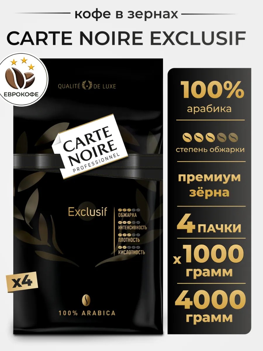 Carte Noire Кофе в зернах CARTE NOIRE Exclusif 100% Арабика 1кг 4шт.
