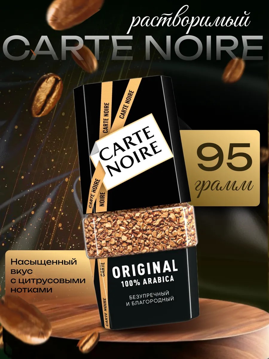 Кофе растворимый Carte Noire Original сублимированный, 95 г. Достигнув совершенства в кофейном мастерстве, CARTE NOIRE создал безупречный стандарт качества кофе CARTE NOIRE ORIGINAL. Это настоящий кофейный шедевр, неподвластный времени.