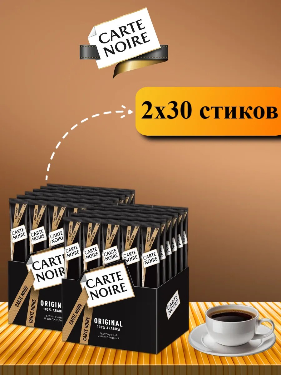 | Полное наименование товара | Кофе растворимый Carte Noire Original, 30 стиков, арабика, натуральный вкус |