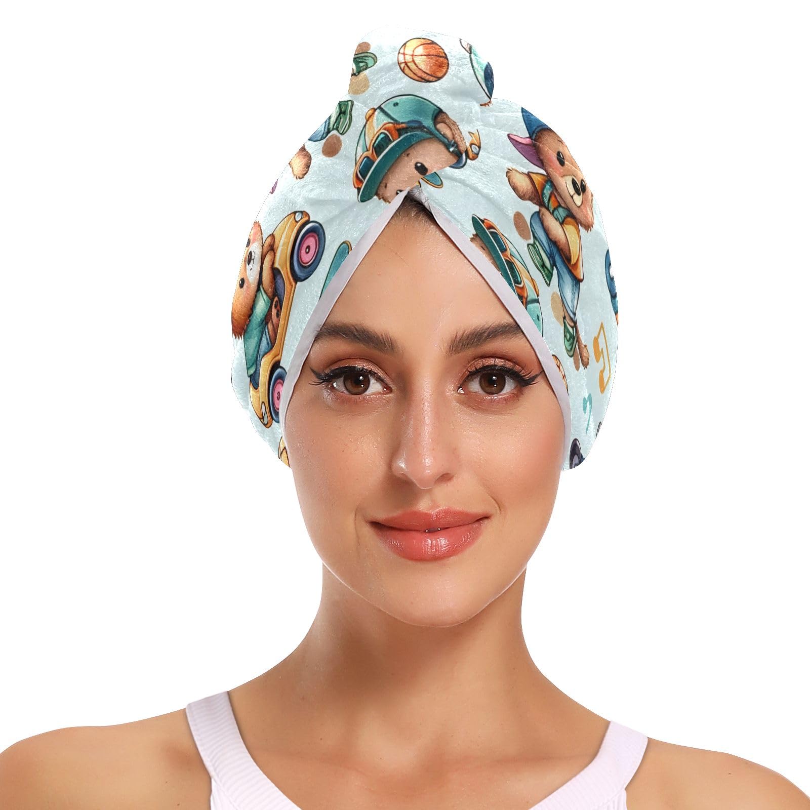 Cartoon Character Hair Towel 2 Pack Super Absorbent Hair Drying Towel Quick Dry Hair Turbans Head Towel with Button Twisty Wrap for Women Girls