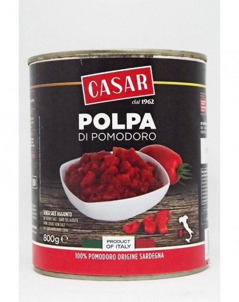 Cubetti tomato puree, measuring 16 x 16 mm, obtained from healthy, ripe, and thoroughly washed fresh tomatoes with a bright red color and characteristic aroma and flavor. ITEM: Peeled tomato cubes dispersed in refined tomato juice evaporated to 8 Brix. Intense, glossy red color, typical of a healthy, ripe tomato. AROMA, FLAVOR: Mild, fresh, typical of peeled tomatoes, without any abnormal flavors. Ingredients: Tomato juice, acidity regulator: citric acid. Label: Casar, Tomato Puree