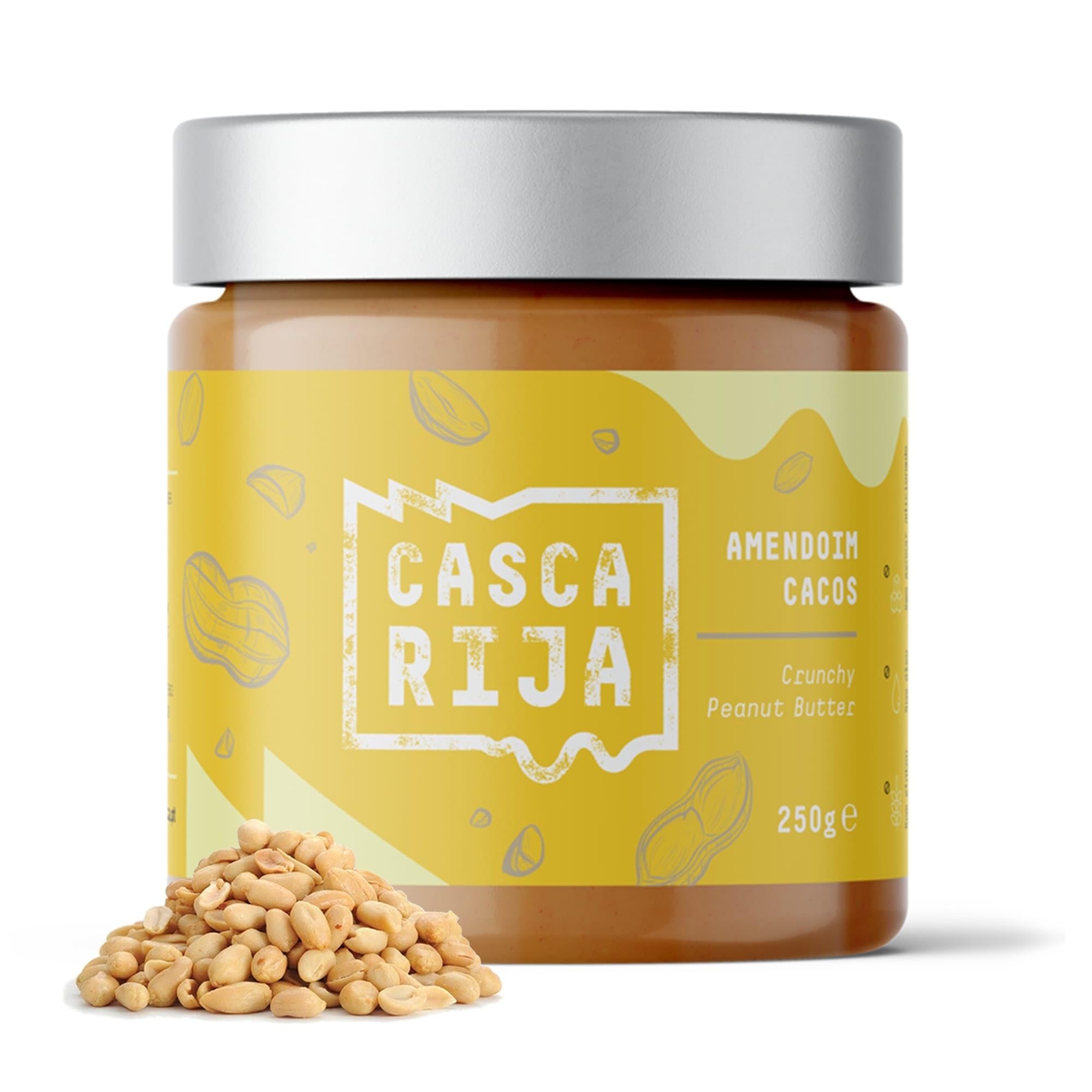 CASCA RIJA: Beurre de Cacahuète Croquant 250g 99,8 de Cacahuètes Grillées 0,01 de Cannelle Moulue 0,01 de Gingembre en Poudre 100 Naturel Avec des Morceaux de Cacahuètes Grillées