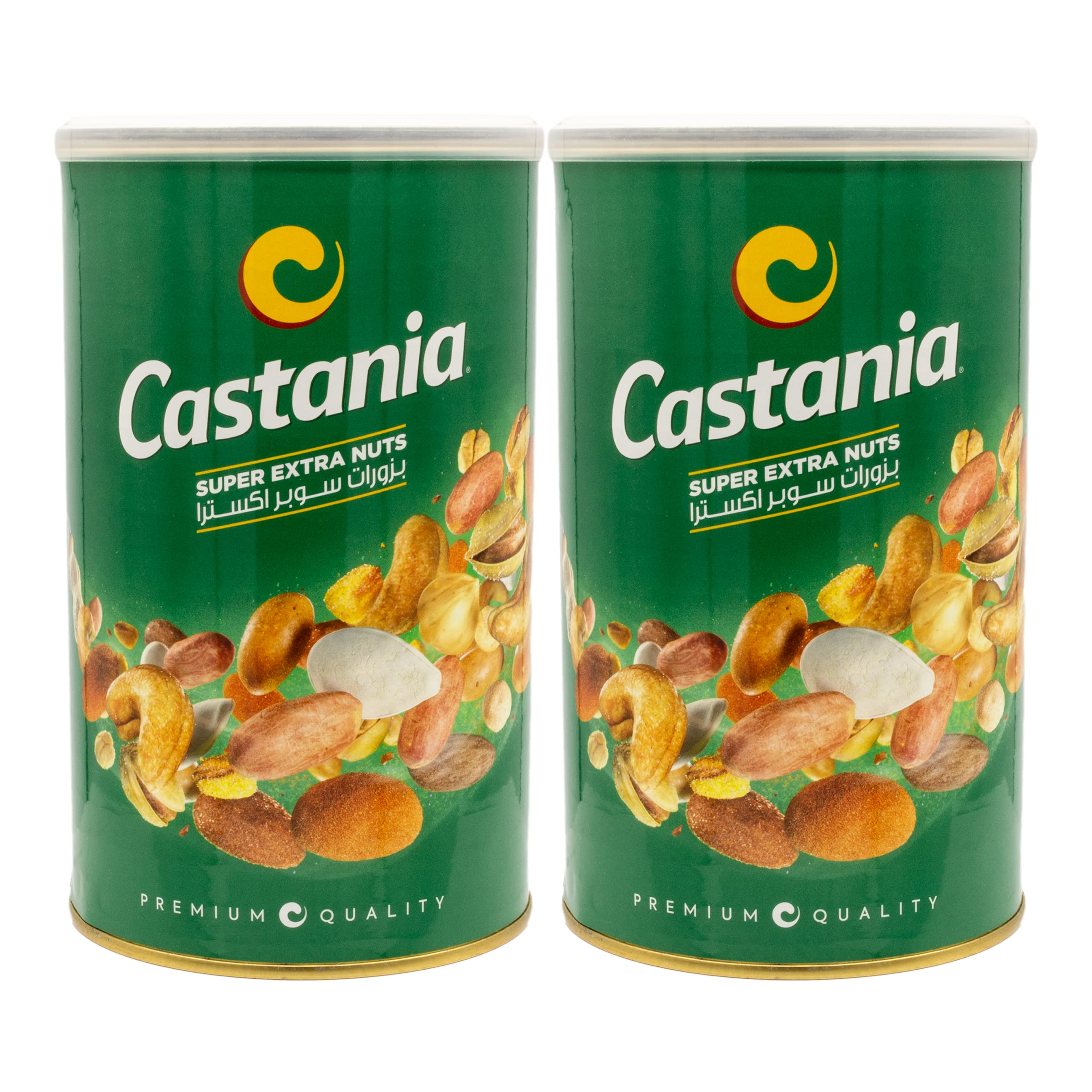 Finest premium nut mix from Castania in 450 g packaging. The Super Premium nut mix contains roasted and salted peanuts, pumpkin seeds, chickpeas, pistachios, almonds, peanuts in a dough coat, cashews, corn kernels and hazelnuts. The quality of this premium nut mix is excellent and unique, because the manufacturer Castania received the highest value for its products at the Superior Taste Award 2006 in Brussels with 3 stars achieved for this balanced creation. This premium quality is absolutely convincing. May contain traces of other nuts! INGREDIENTS peanuts, coated peanuts (wheat flour, sugar, corn starch), pistachio, pumpkin seeds, cashew seeds, almonds, chickpeas. corn, hazelnuts, modified starch (E1422), flavourings: barbecue and smoke (glucose, breadcrumbs (from wheat), flavor enhancer (glutamate E621), maltodextrin, hydrolyzed soy protein, hydrolyzed corn protein, milk derivatives, spices), acidity regulator (citric acid E330), coconut oil, palm oil, salt. INSTRUCTIONS FOR USE Consume at room temperature SAFETY WARNING Allergens: peanuts, wheat flour, pistachio, cashew kernels, baskets, hazelnuts, breadcrumbs, wheat, soy proteins, milk derivatives. May contain traces of sesame. See moreCastania - Oosterse premium notenmix in set van 2 à 450 g Fijnste premium notenmix van Castania in verpakking van 450 g. De Super Premium notenmix bevat geroosterde en gezouten pinda's, pompoenpitten, kikkererwten, pistachenoten, amandelen, pinda's in deegjas, cashews, maïskruten en hazelnoten. De kwaliteit van deze premium notenmix is uitstekend en uniek, want de fabrikant Castania kreeg voor deze evenwichtige creatie bij de Superior Taste Award 2006 in Brussel met 3 bereikte sterren de hoogste waarde voor zijn producten. Deze premium kwaliteit is absoluut overtuigend. Kan sporen van andere noten bevatten! INGREDIËNTEN pinda's, gecoate pinda's (tarwemeel, suiker, maïszetmeel), pistache, pompoenpitten, cashewpitten, amandelen, kiekererwten. maïs, hazelnoten, gemodificeerd zetmeel (E1422), aroma's: barbecue en rook (glucose, paneermeel (van tarwe), smaakversterker (glutamaat E621), maltodextrine, gehydrolyseerde sojaproteïne, gehydolyseerd maïsproteine, melkderivaten, specerijen), zuurteregulator (citroenzuur E330), kokosolie, palmolie, zout. GEBRUIKSAANWIJZING Consumeren bij kamertemperatuur VEILIGHEIDSWAARSCHUWING Allergenen: pinda's, tarwemeel, pistache, cashewpitten, manden, hazelnoten, paneermeel, tarwe, soja-eiwitten, melkderivaten. Kan sporen van sesam bevatten. Meer bekijken