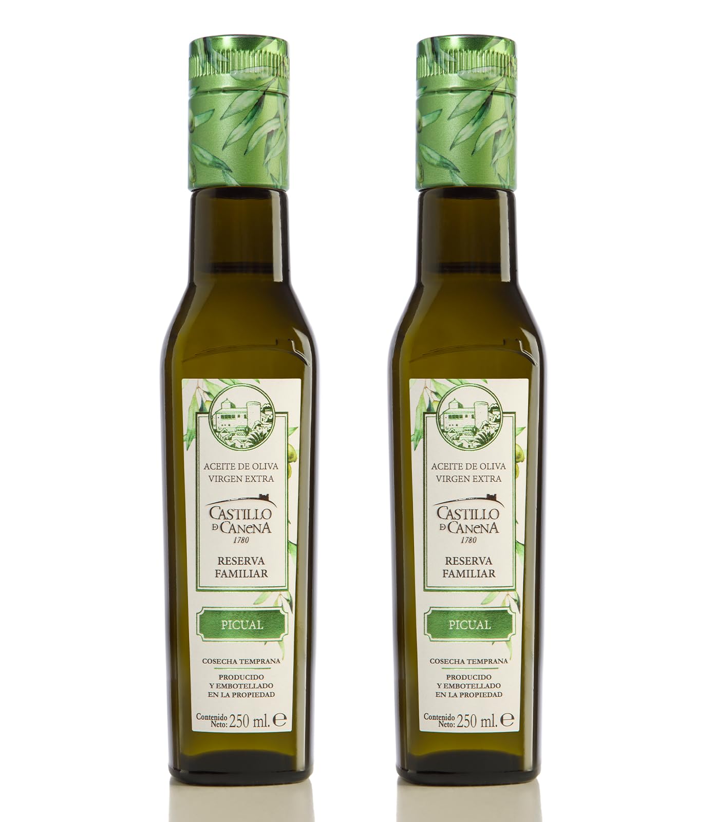 In the mountains of the municipality of Canena (Jaén, Andalusia) lies the headquarters of Castillo de Canena, a very popular family business since 1780. Thanks to the new initiatives of the brothers Rosa and Francisco Vañó, their premium extra virgin olive oils are very popular in more than 40 countries. In addition, it is worth mentioning the number of national and international awards and recognitions that have been obtained in recent years. We present the product Reserva Familiar Picual (Picual Family Reserve) from Castillo de Canena. This is an early harvest oil, that is, the olives were harvested when they were green. This way, end consumers will be able to obtain a fresh product, with herbaceous touches of very high quality. The Castillo de Canena Reserva Familiar is the emblem of the house. The bottles used for the occasion have an elegant and sober design for all audiences.It has won numerous national and international awards and prizes in recent years. It is an ideal addition to soups, vegetable creams, pasta, vinaigrettes, marinades, salad dressings, gazpacho, ham, cheese, grilled meats, and toast. Tasting Notes: Medium-fruity aroma of green olives with ripe notes of fresh fruit such as apple, green banana, and aromatic plants such as thyme and basil. A high-quality Spanish product, typical of Canena (Jaén province, Andalusia). Dans les montagnes de la municipalité de Canena (Jaén, Andalousie) se trouve le siège de Castillo de Canena, une entreprise familiale très populaire depuis 1780. Grâce aux nouvelles initiatives des frères Rosa et Francisco Vañó, leurs huiles d'olive vierge extra de première qualité sont très populaires dans plus de 40 pays. En outre, il convient de mentionner le nombre de récompenses et de reconnaissances nationales et internationales qui ont été obtenues ces dernières années. Nous vous présentons le produit Reserva Familiar Picual (Réserve Familiale Picual) de Castillo de Canena. Il s'agit d'une huile de récolte précoce, c'est-à-dire que les olives ont été récoltées lorsqu'elles étaient vertes. De cette façon, les consommateurs finaux pourront obtenir un produit frais, avec des touches herbacées de très haute qualité. Le Castillo de Canena Reserva Familiar est l'emblème de la maison. Les bouteilles utilisées pour l'occasion ont un design élégant et sobre pour tous les publics.De nombreux prix et récompenses ont été remportés au niveau national et international ces dernières années. Compléments idéaux pour la préparation de soupes, de crèmes de légumes, de pâtes, de vinaigrettes, de marinades, de sauces à salade, de gaspacho, de jambon, de fromages, de grillades et de toasts. Notes de dégustation: Arôme moyennement fruité d'olives vertes avec des notes mûres de fruits frais comme la pomme, la banane verte et des plantes aromatiques comme le thym et le basilic. Un produit espagnol de haute qualité et typique de Canena (province de Jaén, Andalousie).