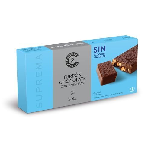 Castillo de Jijona - Nougat chocolat aux amandes sans sucre 200 g - Nougat sans sucre - Go t incomparable - Sans gluten - Haute qualit - Dur e de vie de 18 mois - Fabriqu en Espagne