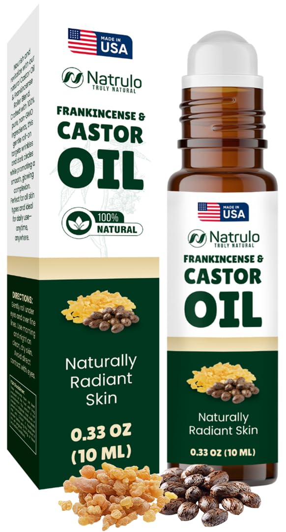 SKIN REVIVAL MOISTURE LOCK: This roll-on locks in moisture, softens skin, and visibly reduces wrinkles. Packed with castor oil for skin, it restores hydration while keeping your skin glowing and youthful. WHERE TO APPLY FOR MAXIMUM BENEFITS: Use the castor oil roller on your wrists, temples, neck, and face to lock in moisture and smooth skin. Perfect for treating under-eye bags and dry spots with a gentle, natural formula. UNDER-EYE ROLLER FOR REVITALIZED EYES: Smooth wrinkles, reduce puffiness, and soothe tired eyes with the castor oil roll-on. Targets fine lines and dark circles under your eyes, leaving them refreshed and revitalized. GENTLE, NATURAL SKINCARE: Nourish your skin with castor oil for face and castor oil for eyebrows. This roller promotes thicker eyelashes, a glowing complexion, and healthy skin—safe for daily use and free from harsh chemicals. THE SECRET TO A YOUTHFUL LOOK: Unlock moisturizing, brightening, and revitalizing benefits with castor oil and frankincense essential oil. Reduces dark under-eye circles, under-eye bags, and smooths fine lines for a glowing, youthful appearance.