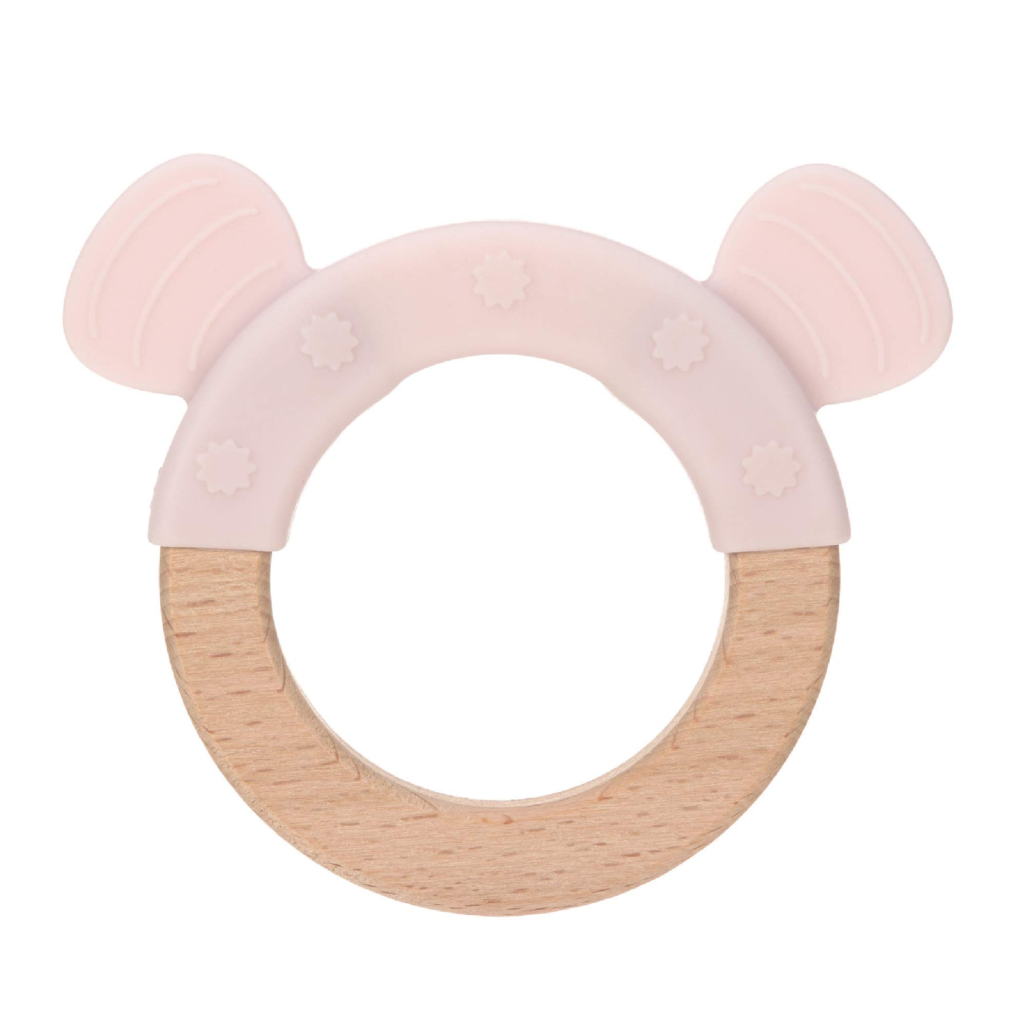 LÄSSIG Baby Greifling Beißring Beißhilfe Holz Silikon schadstoffgeprüft Spielen Anfassen Motorik Zahnen/ Teether Ring, Little Chums Mouse, rosa