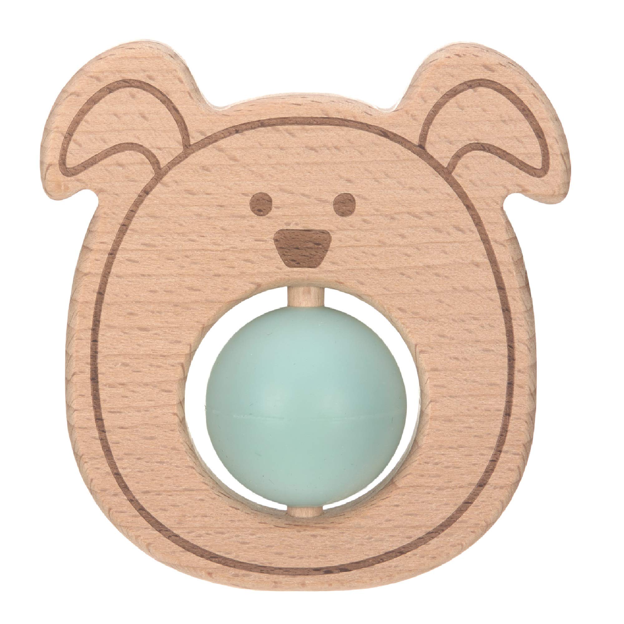 LÄSSIG Baby Greifling Beißring Beißhilfe Holz Silikon schadstoffgeprüft Spielen Anfassen Motorik Zahnen/Teether Ball, Little Chums dog, blau