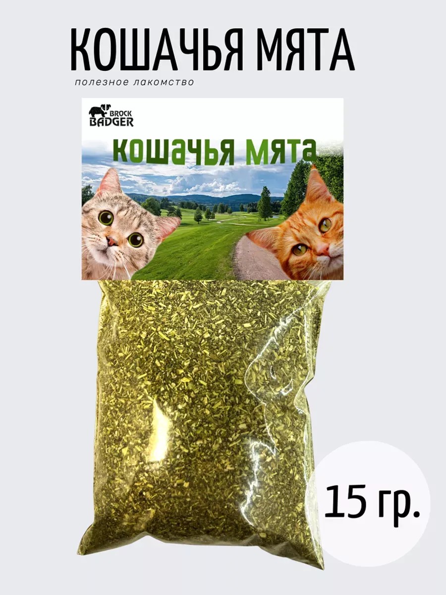Catnip is a great treat for your cat. This catnip (Nitrile) grows in regions from the European part of the world to the Far East, and the herb grows in forests, fields, and garden plots. Catnip is a 100% natural product that has a calming effect on cats. Dried mint leaves can be used to improve digestive function. Catnip is used during play; it helps relieve stress, helps with adaptation during a move, entertains in the owner's absence, helps draw attention to play areas (scratching posts, toys) and resting areas (beds, houses), and also modifies behavior and calms the pet. To attract attention to a bed or re-engage with old toys, simply sprinkle the catnip on the bed or toys. When traveling, sprinkle catnip in the carrier to help your pet cope with the stress of a visit to the vet or a move. Catnip is light green in color and has a subtle, pleasant herbal aroma that doesn't cause discomfort to owners. Catnip-treated toys are almost always attractive to all cats. However, approximately 20% of cats show little or no response to catnip. For example, kittens under 3 months of age rarely show interest in these feline activities. If your furry friend doesn't like catnip, give it to a friend's cat. Catnip is tightly packed in a 2-zip bag with a pull tab to ensure it's delivered to you without damage during transportation. This product contains no additives. It is not addictive. Important! Do not use on pregnant cats! Not intended for everyday use! Treat your furry friend with a tasty and healthy treat: buy a gift for your cat – catnip! Add our store to your favorites and stay up-to-date on new products. With love, your Badger Brock!