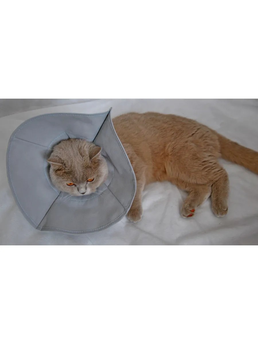 Защитный воротник мягкий ЗВМ01 для кошек и собак мелких пород. Ткань спанбонд, на шее животного фиксируется шнурком. Высота 14см, обхват шеи 20-30см.