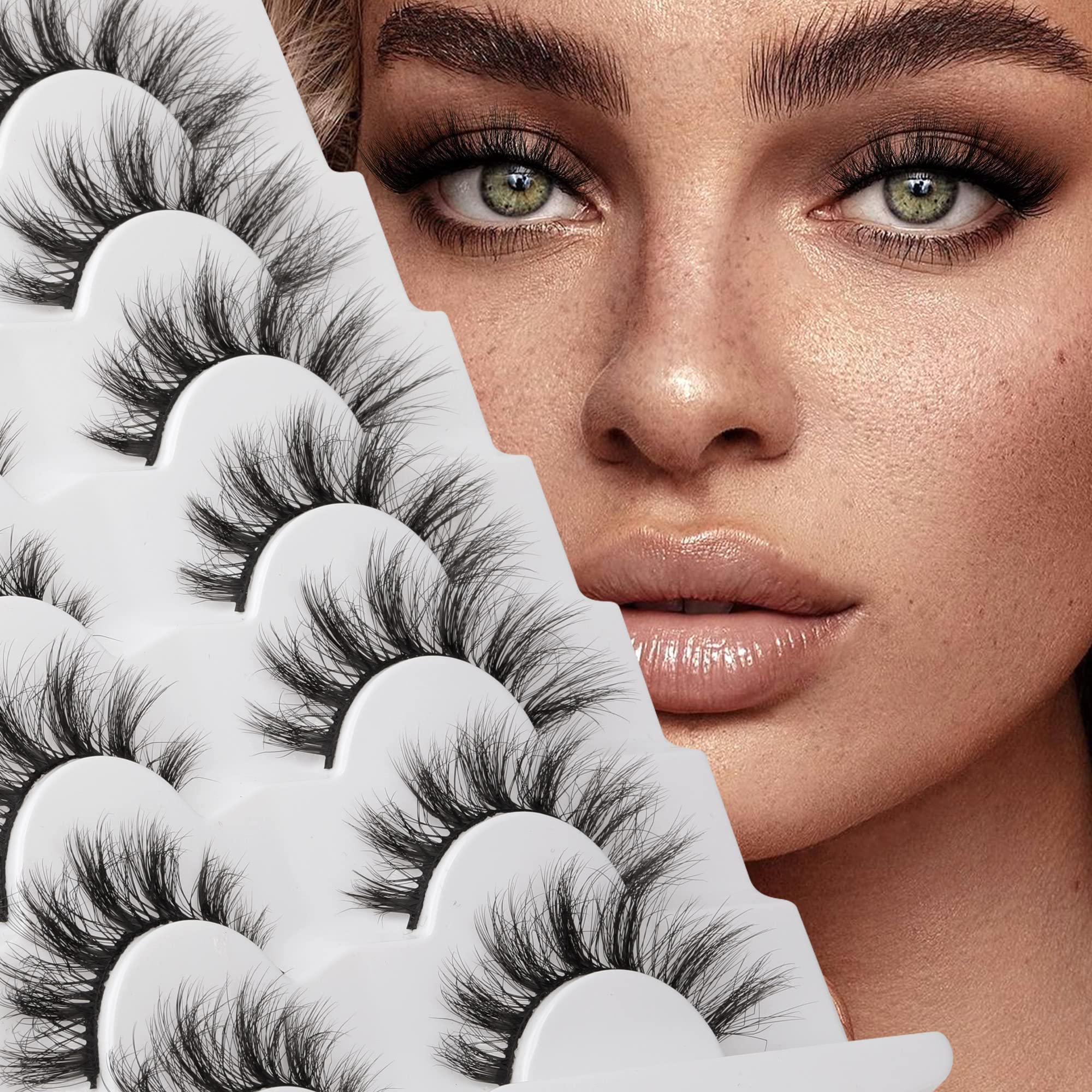 Cat Eye Lashes Faux Mink Fluffy Eyelashes Volume Wispy 3D Full Soft 7 Paris Fake Eyelashes Pack by Lanflower