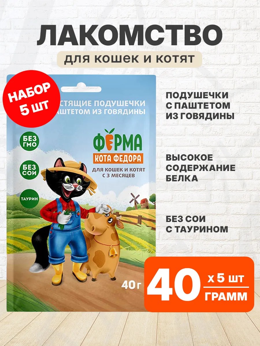 Ферма Кота Фёдора Лакомство подушечки для кошек и котят говядина 40 г 5 шт