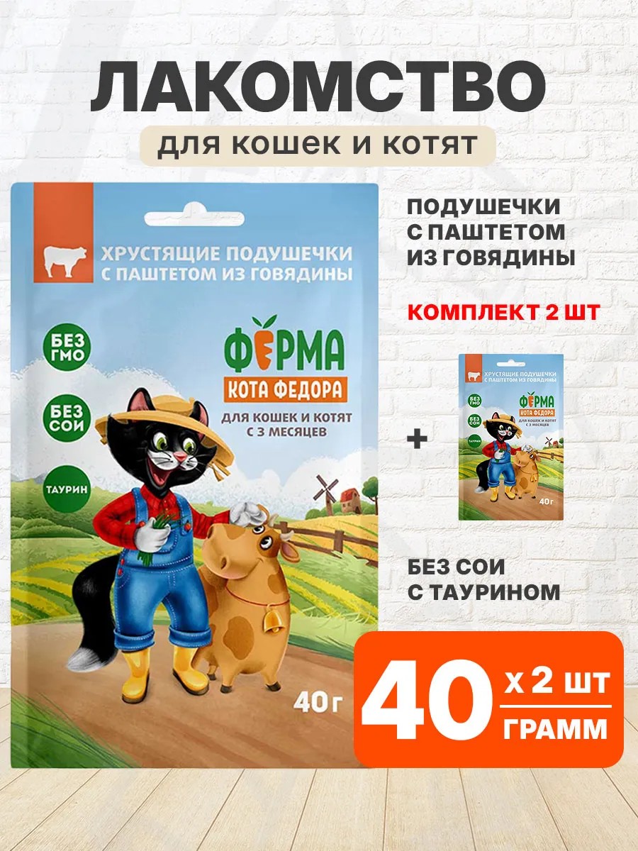 Ферма Кота Фёдора Лакомство подушечки для кошек и котят говядина 40 г 2 шт