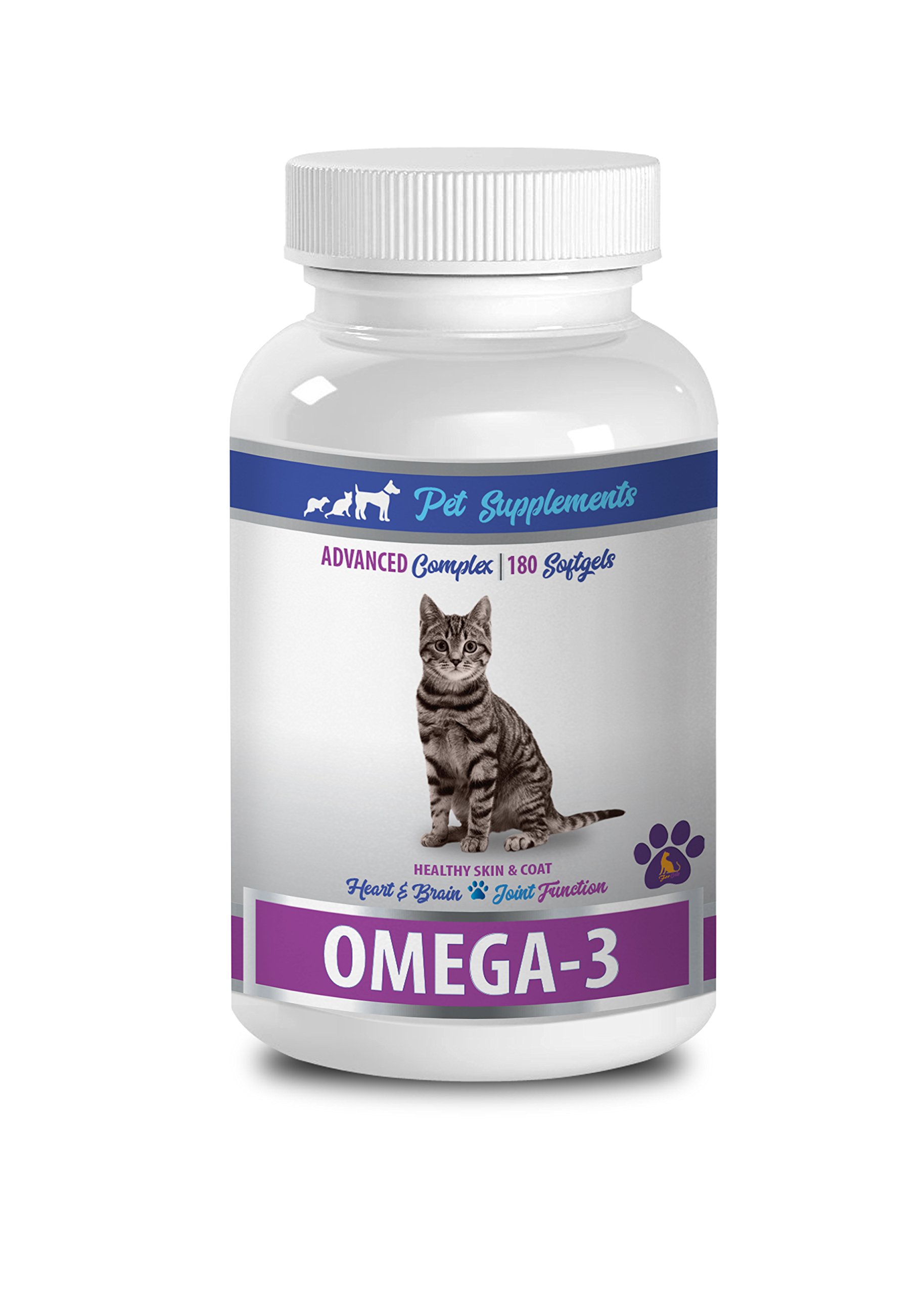 cat omega 3 - OMEGA 3 - FOR CATS - HEART BRAIN AND JOINT FUNCTION - SOFTGELS - cat joint supplements - 1 Bottle (180 SOFTGELS) REDUCES DRY, FLAKY SKIN ON CATS: Unfortunately, when a cat has a poor coat and unhealthy skin, they are at an increased risk for irritation, itching, and skin allergies. Regular supplementation of omega-3 can increase the health of your cat's skin and coat. It can also reduce the incidence of hot spots on your cat, and even stop dandruff. Plus, omega-3 may decrease shedding. All things which help promote a healthy, shining coat. PROMOTING CATS HEART HEALTH: Cats that supplement with omega-3 may reduce their chances of developing an irregular heart rhythm, as well as reduce their potential to develop heart problems. It can also work to stop the formation of clot problems. Regular supplementation may also help your pet decrease there cholesterol levels, maintain a healthy blood pressure, and normalize your cats body weight. BEST COGNITIVE FUNCTION FOR CATS: Omega-3 supplementation can also support your cat's neurological health and cognitive functions. Especially in cats who may have problems from age-related changes with behavior and mobility. There are studies with evidence that suggests consuming omega-3 fatty acids can positively impact cognitive and behavioral memory and performance, such as improved agility. CATS REDUCE INFLAMMATORY PROBLEMS: Omega-3 fatty acids are especially helpful for cats that have problems from inflammatory issues such as allergies and early atopy. Allergies and early atopy causes severe itching and sometimes even hair loss if it gets too bad. Keeping your cat supplemented with omega-3 is helpful in controlling these types of skin problems.100 SATISFACTION GUARANTEE, if you are not satisfied with the results we will refund your money even if you have finished the bottle. We are a loyal business with our own pets and know how important your pet's health is to you. Make your RISK FREE purchase today with Pet Supplements!. WHY CATS NEED FATS: Protein provides calories and also the building blocks for virtually every structure in your cat's body. They build muscles and soft tissue, skin, hair and nails, blood cells, neurotransmitters and the enzymes that control virtually every action in its body. This will help to insure that your cat is strong and healthy for unlimited play time. CATS GOOD BUILDING BLOCKS: So getting proteins and fats right is critical to your cats health, they're the building blocks for good nutrition. And getting the fats right means not just the amount of fat, but the balance. Also the Carbohydrates that Omega-3 provides your pet is pure energy and plays no other role. With this in mind you cat can feel and look a lot better if they are having health problems. OMEGA-3 SOFTGELS FOR CATS: This natural Omega-3 is made in a softgel form for your cat to take. For bigger cats they can take this within there food or if you have a smaller cat just puncture the softgel and apply oil directly to food. This supplement is the best and optimal for your cats health and wellness. Made from wild anchovy, mackerel and sardine. Also other ingredients include Crude fat, Omega-3 fatty acids, EPA and a lot more. IMPORTANCE OF OMEGA3 FOR CATS: Fats are the second most important part of your cats diet, next to protein. In the wild, nearly half the calories wild cats eat are from fat. But given the importance of fat in the diet, it's surprising how so many of us make the same mistake. And this mistake can create dangerous inflammation for your lovely cat.