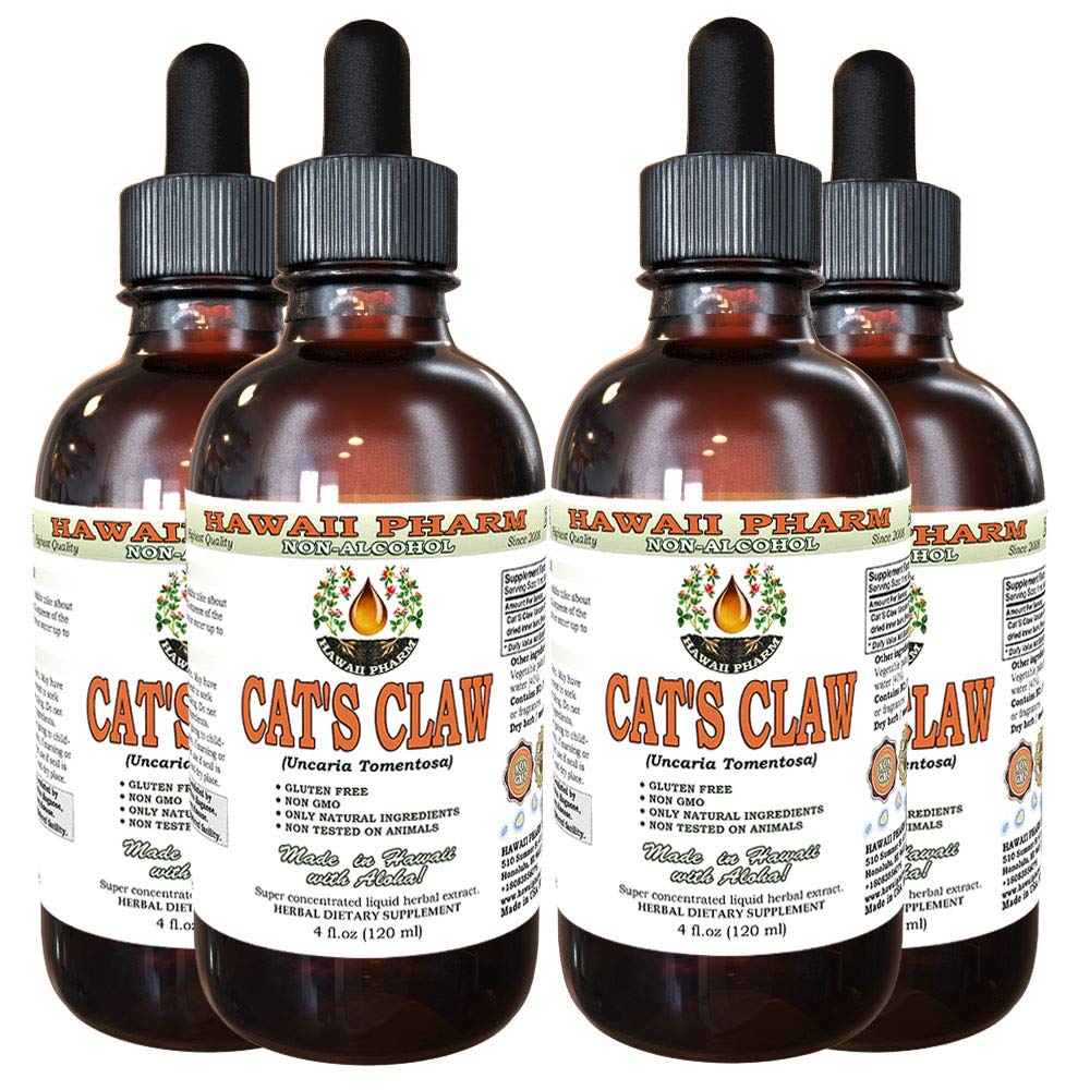 Cat's Claw Alcohol-Free Liquid Extract Cat's Claw (Uncaria Tomentosa) Dried Inner Bark Glycerite Hawaii Pharm Natural Herbal Supplement 4x4 oz 16 Fl Oz (Pack of 1)