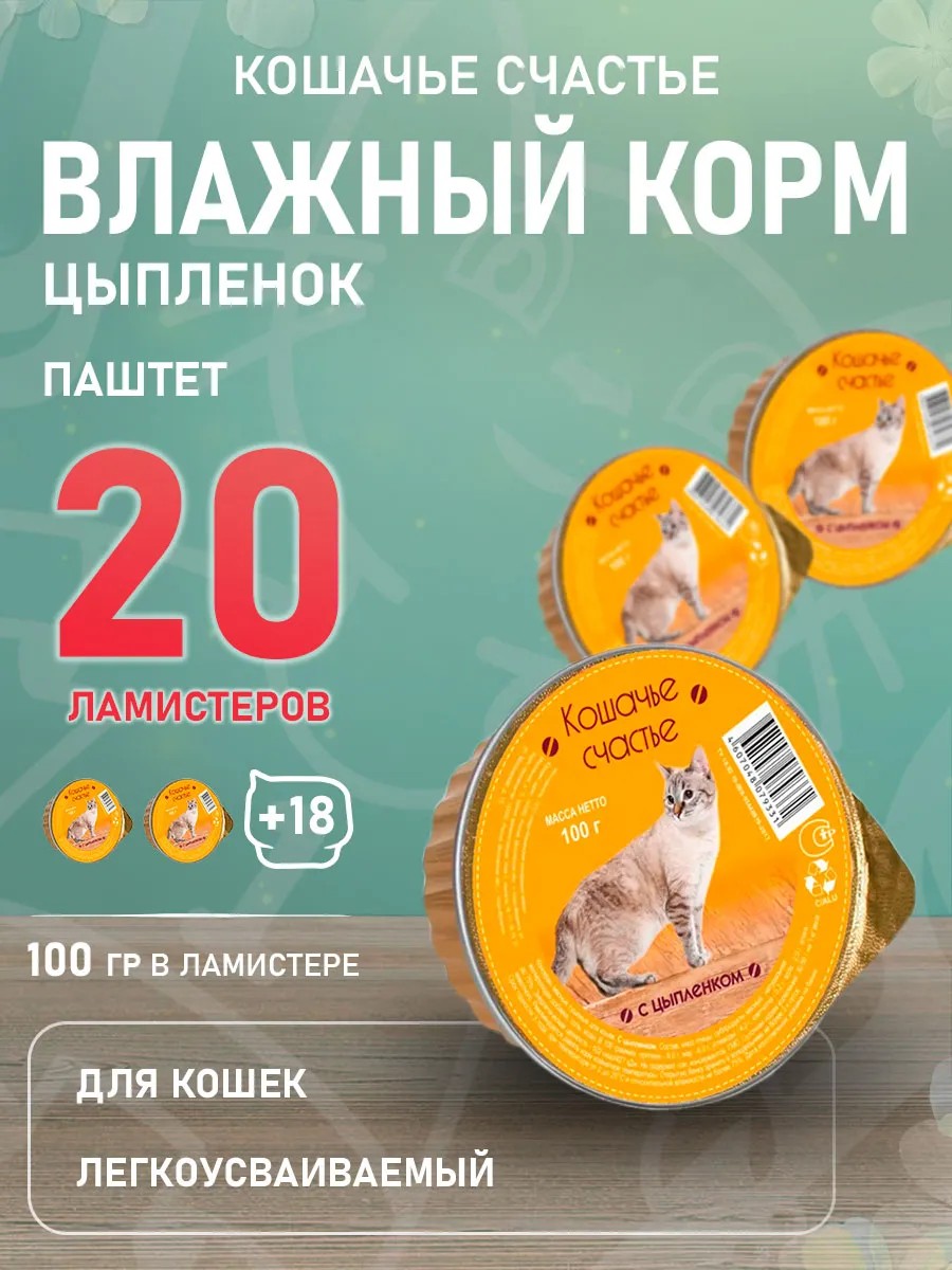 Кошачье счастье Корм влажный для кошек цыпленок 100 г 20 шт