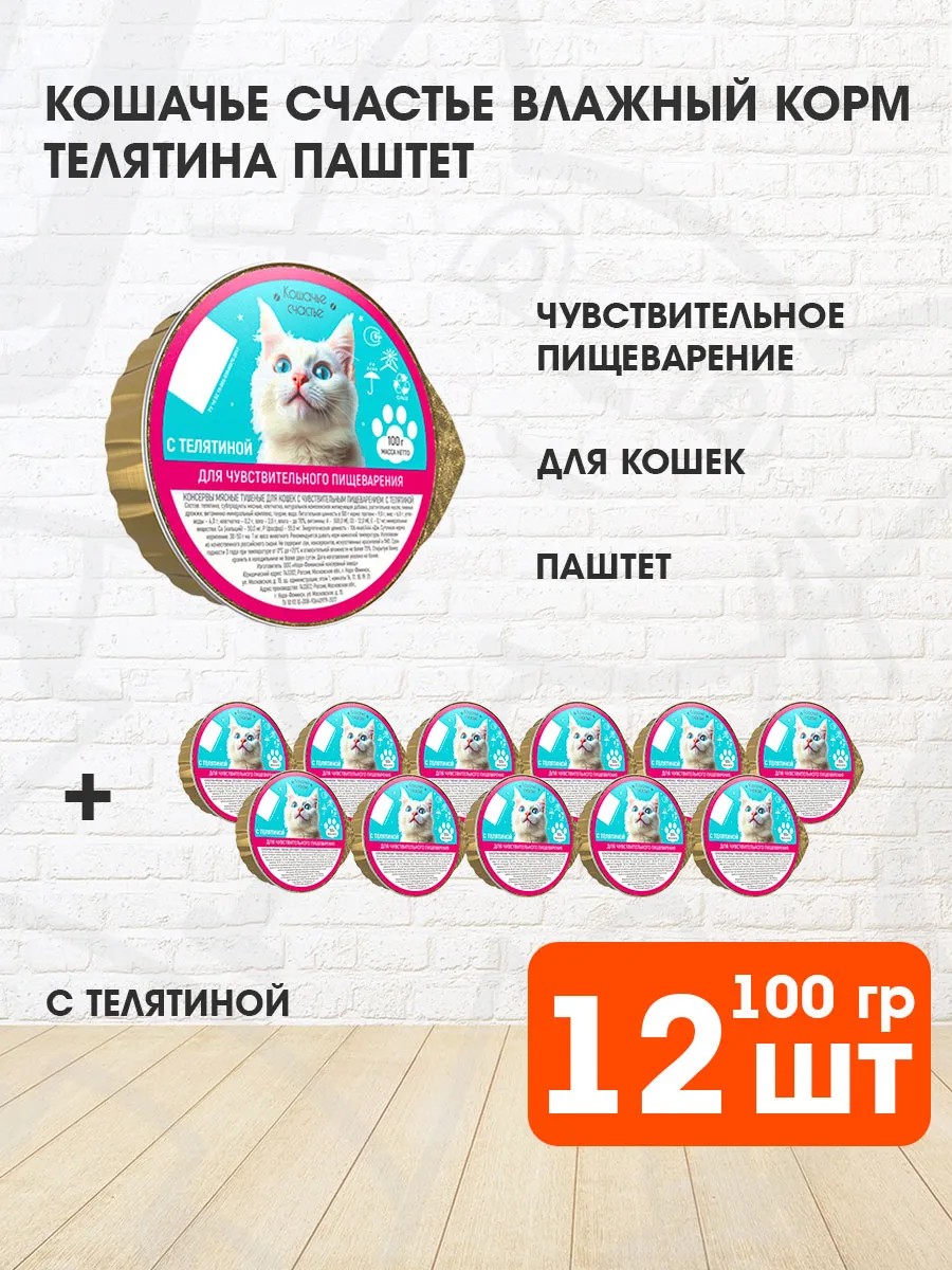 Кошачье счастье Корм влажный для кошек телятина 100 г 12 шт