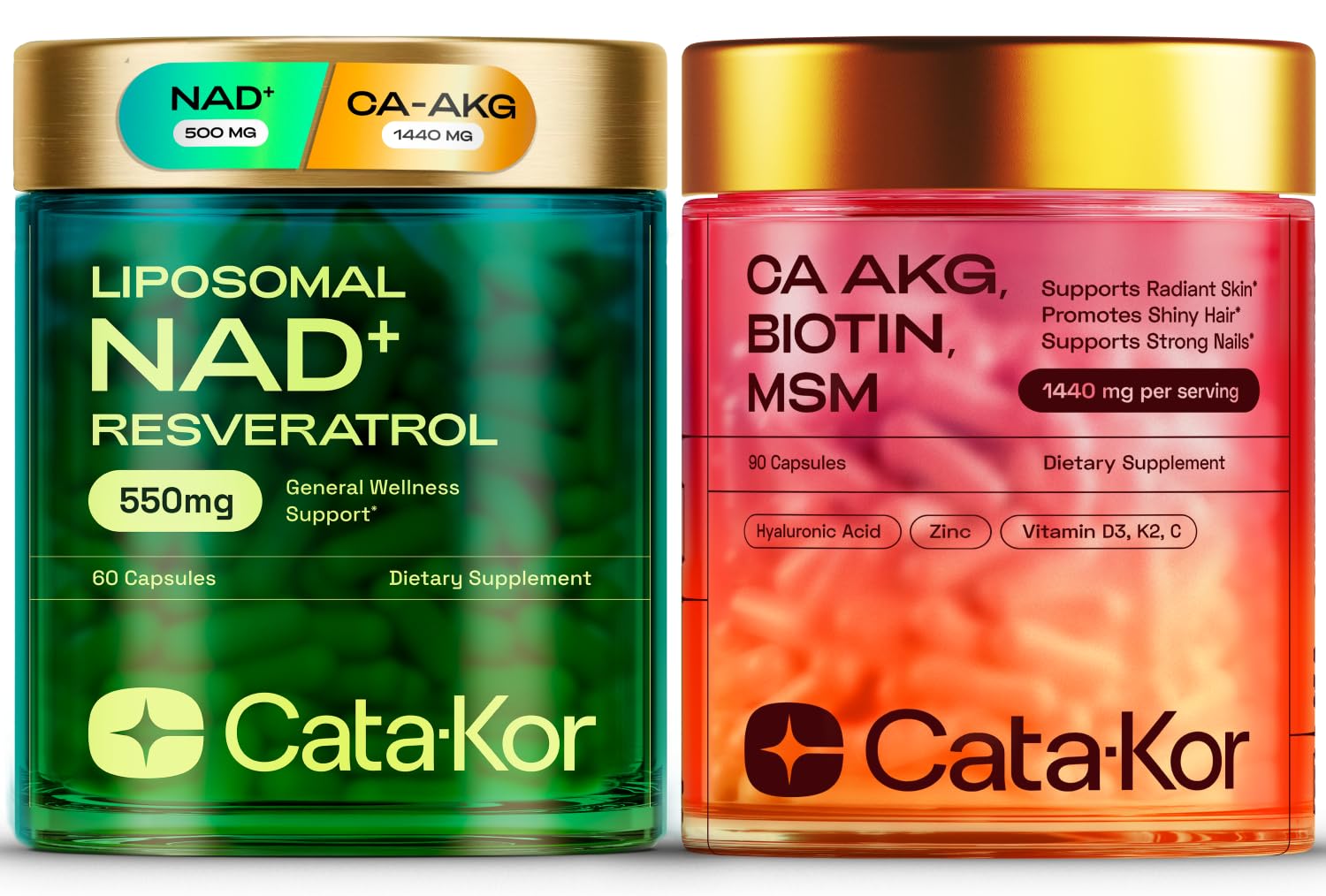 Cata-Kor NAD+ Supplement & Ca-AKG Complex - Liposomal NAD+ Supplement with Resveratrol (60 Capsules) & Ca-AKG MSM Hyaluronic Acid & Biotin Beauty Complex (90 Capsules) Third-Party Tested