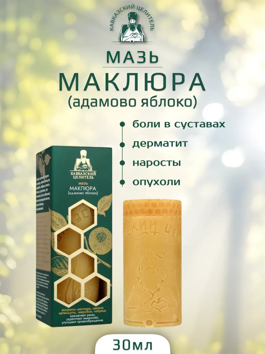 Мазь создана по древним рецептам знающих мудрецов Кавказа и используется при первых признаках опухолевых и воспалительных процессов. Масляный экстракт маклюры обладает ранозаживляющим, противомикробным, улучшающим кровообращение в поражённых участках свойствами. Комплекс масляных экстрактов в составе применяется как антисептическое и антибактериальное средство, а совместно с мёдом улучшает обменные процессы кожного покрова, способствует укреплению его иммунитета. Мазь применяют при болях в суставах, дерматите, наростах, опухолях.