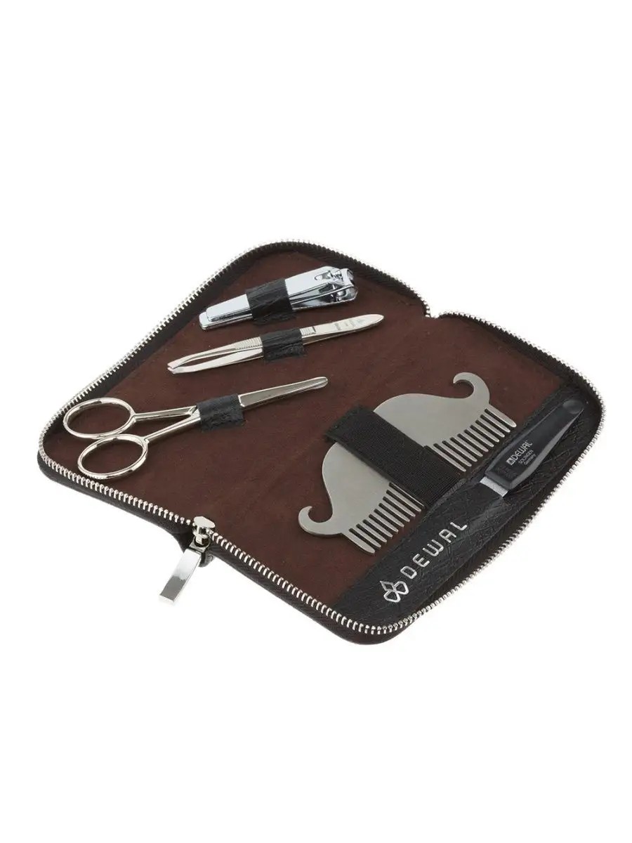 Мужской набор для бороды, усов и ногтей серии "FOR MEN", 5 предметов. Маникюрный набор из 5 инструментов выполнен в истинно мужском стиле. ФУТЛЯР: высококачественная натуральная кожа в черном цвете. КОМПЛЕКТАЦИЯ: ножницы для бороды и усов - 9 см, расческа для бороды и усов, книпсер для ногтей - 6 см, пилка металлическая - 12. 5 см, пинцет скошенный - 8 см. Сегодня бренд - один из лидеров российского рынка, соединяющий в своей продукции лучшие технологии и дизайн с надежностью и доступной ценой. Маникюрные наборы - идеальные помощники в создании безупречного маникюра и педикюра. Высококачественные материалы, используемые при производстве инструментов, обеспечивают надежность, прочность и долговечность изделий. В каждом наборе Вы найдете для себя только действительно нужные и функциональные инструменты. Благодаря элегантному дизайну маникюрные наборы прекрасно подойдут в качестве идеального подарка как женщине, так и мужчине. С маникюрными наборами ежедневный уход станет по-настоящему легким и профессиональным.