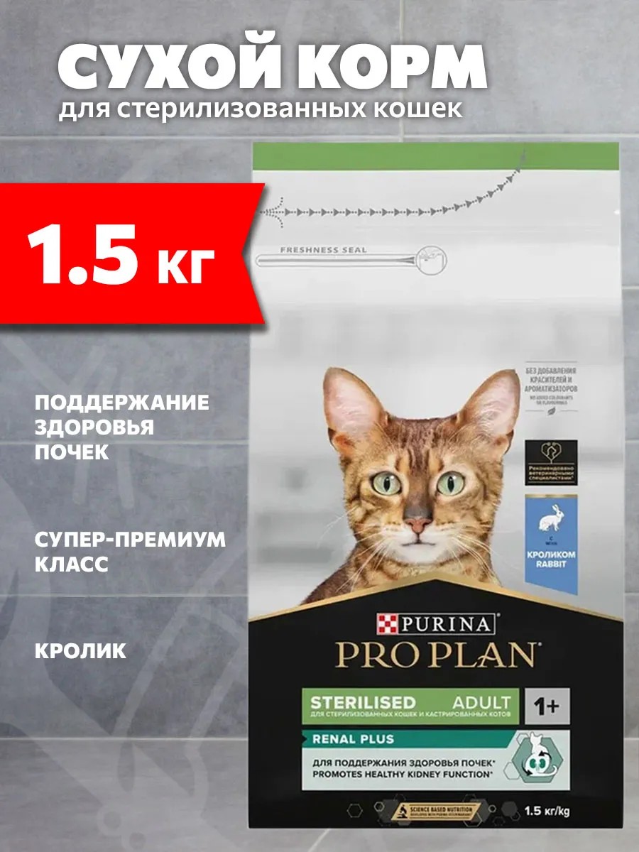 Команда квалифицированных ветеринарных специалистов и диетологов разработала сухой корм для стерилизованных кошек и кастрированных котов Pro Plan Sterilised Renal Plus для поддержания здоровья почек после стерилизации.