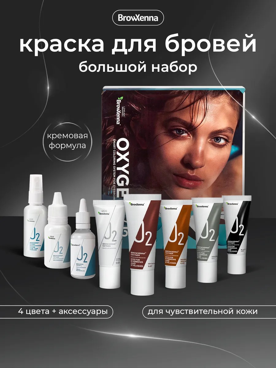BROWXENNA Краска для бровей и ресниц профессиональный набор OXYGEN J2