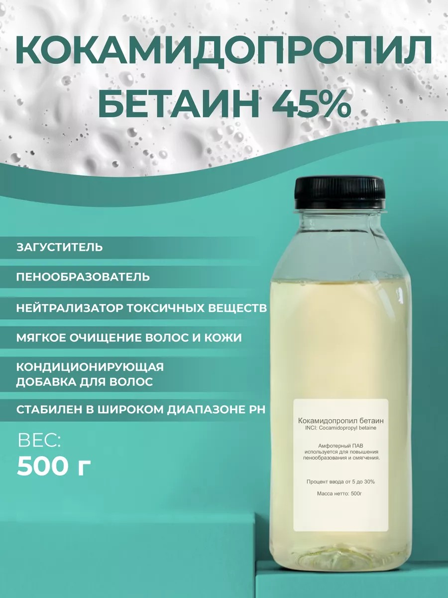Кокамидопропил бетаин, 45% - мягкое со-ПАВ, увеличивает пенообразование и загущает в сочетании с основным анионным ПАВ и хлоридом натрия. Актив производят из жирных кислот кокосового масла. Он предназначен для мягкого очищения волос и кожи, так же подохдит для создания мыльных пузырей. Совместно с анионными ингредиентами ПАВ выполняет функции загустителя и улучшает пенообразование. Пена с ним становится более густой и дольше держится. Для волос является не только отличным очистителем, но и кондиционером. Он обеспечивает легкость расчесывания, препятствует электризации. Продукт стабилен в широком диапазоне pH, обеспечивая тем самым создание рецептур с разнообразными компонентами для использования их в различных областях производства косметических средств и средств бытовой химии. Входит в состав шампуней, гелей для тела, пены для ванн, жидкого мыла, кондиционеров для волос, зубных паст, гелей для умывания. Подходит для детских средств. Применяется как в рецептурах косметических моющих средств, так в составах средств бытовой химии (средства для мытья посуды, универсальные моющие средства).