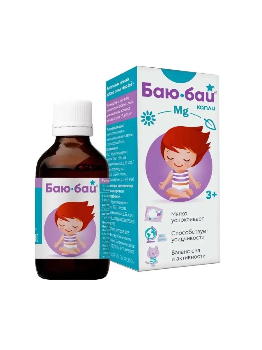 "Баю-бай" успокоительные капли для детей старше 3 лет представляют собой биологически активную добавку к пище, разработанную для улучшения сна и снижения возбудимости у детей. Эти капли содержат уникальный состав, который способствует созданию спокойной атмосферы в доме и помогает детям легче засыпать.