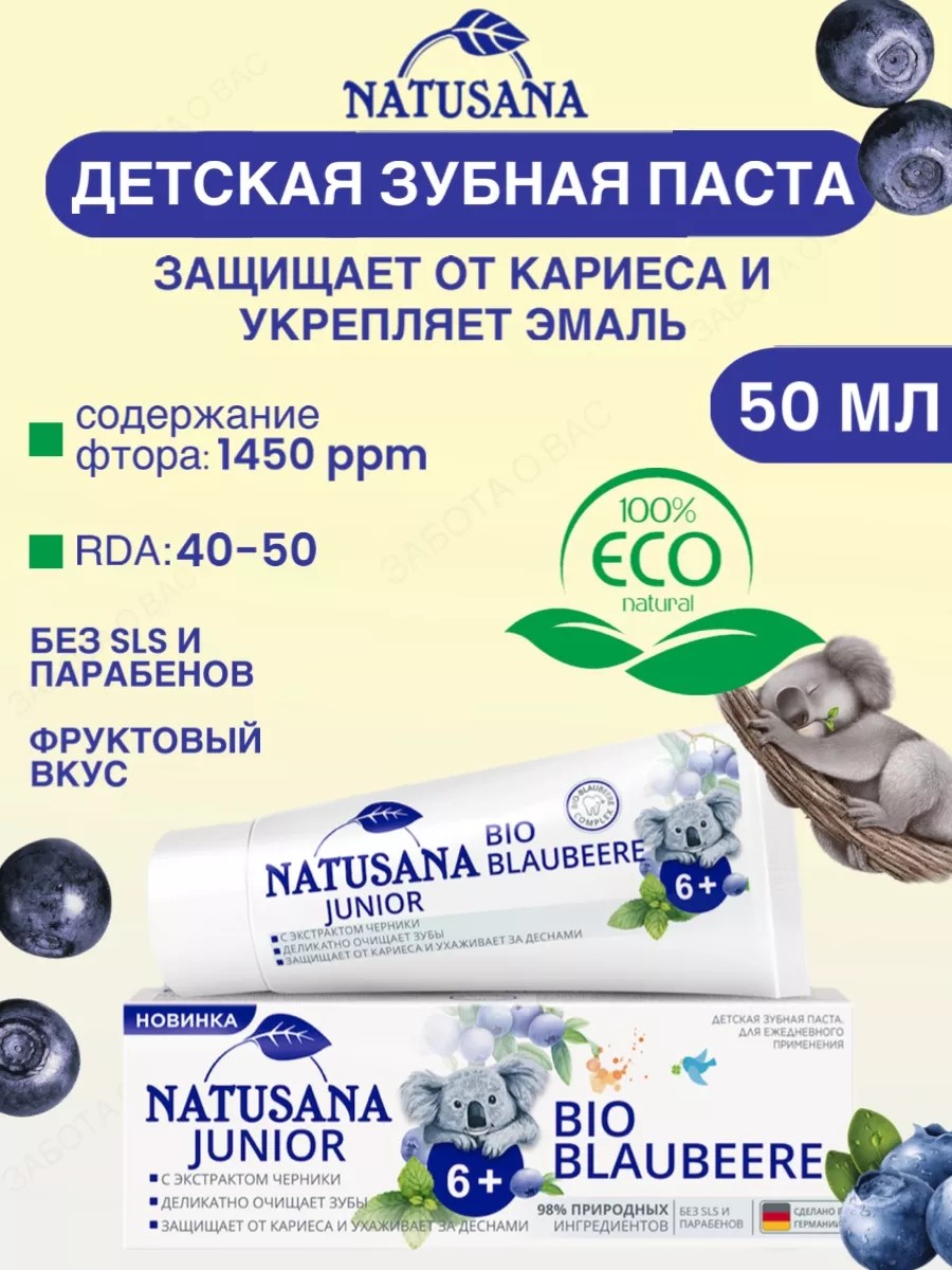 Детская зубная паста junior bio minze blaubeere 6+ 50мл