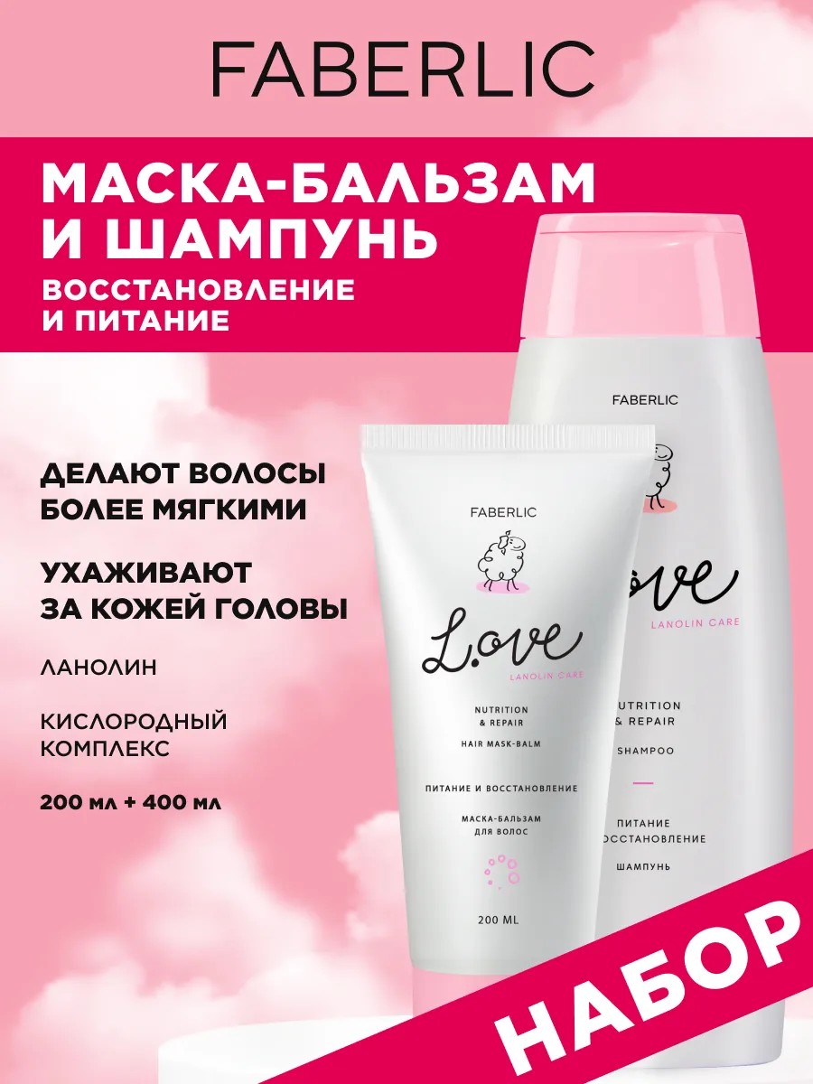 Косметический набор для волос — идеальный комплексный уход для всей семьи от Faberlic серии L.OVE, включающий увлажняющий шампунь «Питание и восстановление» и бальзам-кондиционер, которые вместе создают полноценный уход для детской и взрослой аудитории.