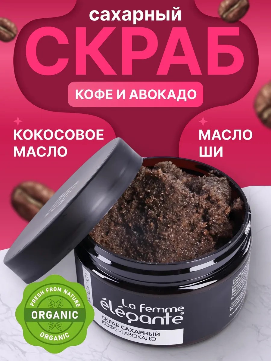 Сахарный скраб для тела с кофе и авокадо увлажняющий 320 гр