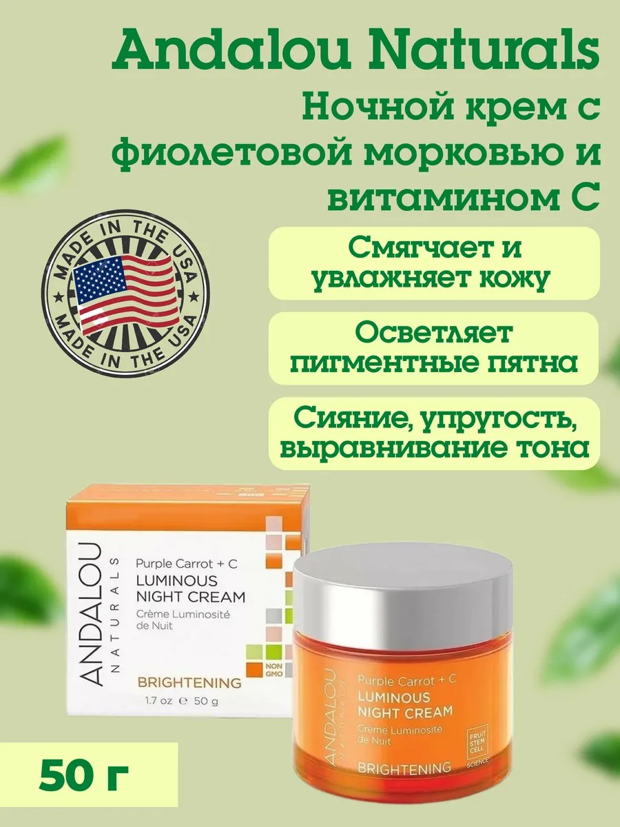 Andalou naturals Ночной крем с фиолетовой морковью и витамином С, 50 мл