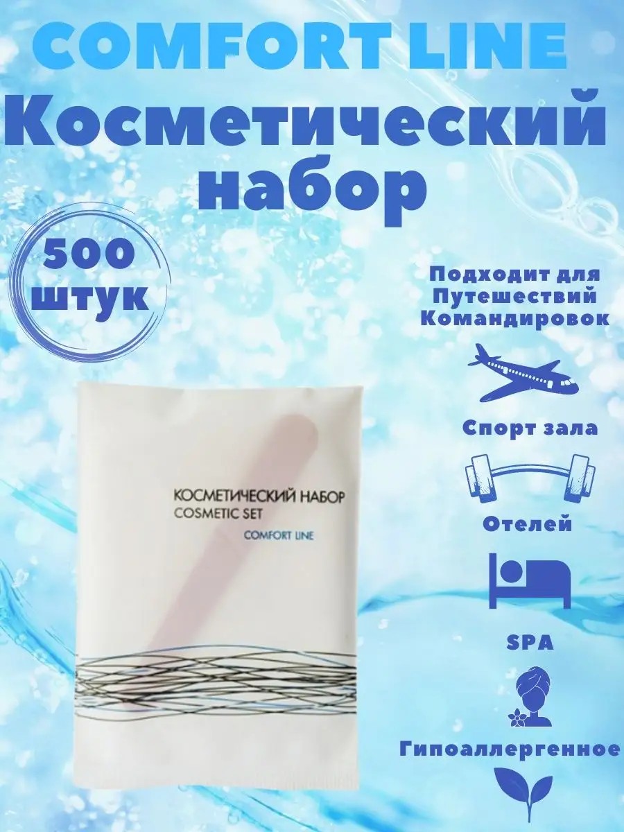 | Комплектация | 500 штук; косметика для гостиниц; одноразовая косметика; косметический набор, дорожный набор; косметический набор для гостиниц |
