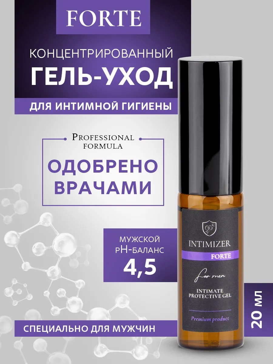 Средство для мужской интимной гигиены нового поколения. Гель-уход Intimizer Forte на 100% заменяет широкий арсенал привычных средств. Всё в одном! Богатый натуральный состав - не имеет аналогов. В комплексе выполняет все необходимые функции по поддержанию интимного здоровья и комфорта. Восстанавливает микрофлору. Оказывает длительное освежающее и ухаживающее действия. Категория «аптечные товары» - имеет дополнительные терапевтические свойства. Одобрен урологами.