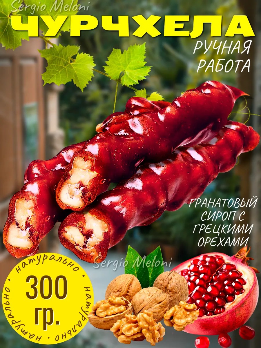 Sergio Meloni Чурчхела натуральная с грецким орехом гранатовая 300 гр