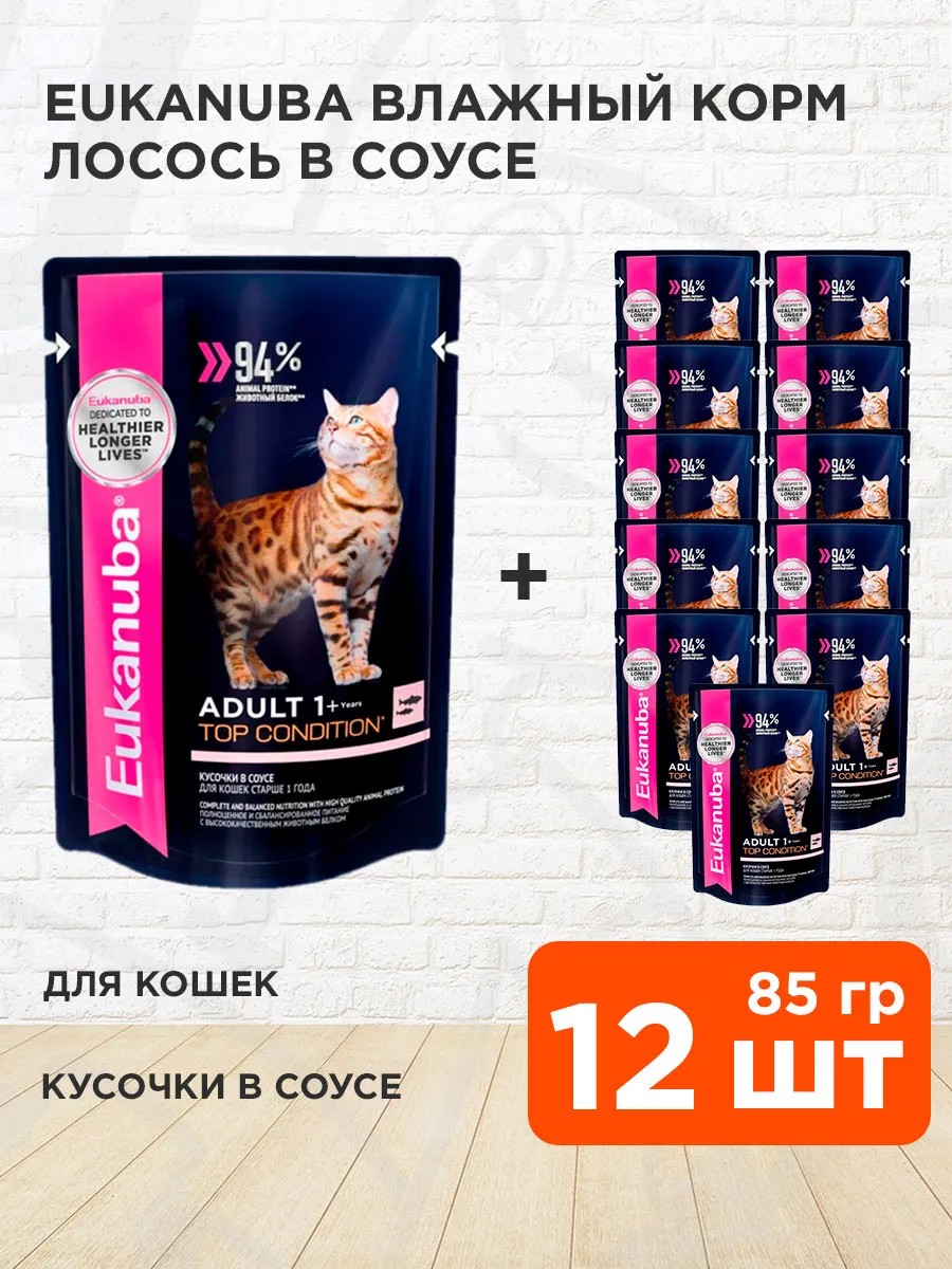 Eukanuba Корм влажный для кошек лосось в соусе 85 г 12 шт
