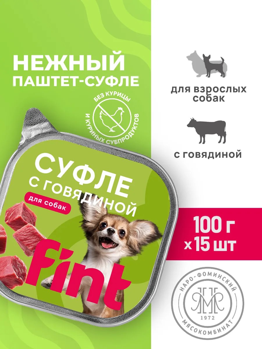 Fint влажный корм для взрослых собак мелких и средних пород суфле с говядиной, консервы в ламистере - 100 г х 15 шт