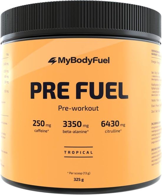 Suitable for every athlete: Whether you go for strength, speed or endurance, PreFuel supports you with every form of movement. Minimizes energy dip (crash): Thanks to the balanced formula, your energy level remains stable, ideal if you want to remain active after your training. Free from added sugars and unnecessary ingredients: Only the essential ingredients, so you can perform without worries and effectively. Boost your training: Gives you the strength and energy to get the most out of every workout, regardless of your sport level or goals. Perfect dosage of active ingredients: Contains 250 mg caffeine, 3350 mg beta-alanine and 6430 mg citrulline per dose – the ideal combination for more energy, endurance and focus. Healthy pre-workout: Specially developed for the everyday athlete who is looking for an effective and responsible boost during training, without unnecessary additives or sugars.Preworkout Tropical, Pre-Workout, Per Scoop 250 mg Cafeïne, 325 gram (25 porties)Geschikt voor elke sporter: Of je nu gaat voor kracht, snelheid of uithoudingsvermogen, PreFuel ondersteunt je bij elke vorm van beweging. Minimaliseert energiedip (crash): Dankzij de uitgebalanceerde formule blijft je energieniveau stabiel, ideaal als je na je training nog actief wilt blijven. Vrij van toegevoegde suikers en onnodige ingrediënten: Alleen de essentiële ingrediënten, zodat je zonder zorgen en effectief kunt presteren. Boost je training: Geeft je de kracht en energie om het maximale uit elke workout te halen, ongeacht je sportniveau of doelstellingen. Perfecte dosering van werkzame stoffen: Bevat 250 mg cafeïne, 3350 mg beta-alanine en 6430 mg citrulline per dosering – de ideale combinatie voor meer energie, uithoudingsvermogen en focus. Gezonde pre-workout: Speciaal ontwikkeld voor de alledaagse sporter die op zoek is naar een effectieve en verantwoorde boost tijdens trainingen, zonder onnodige toevoegingen of suikers.