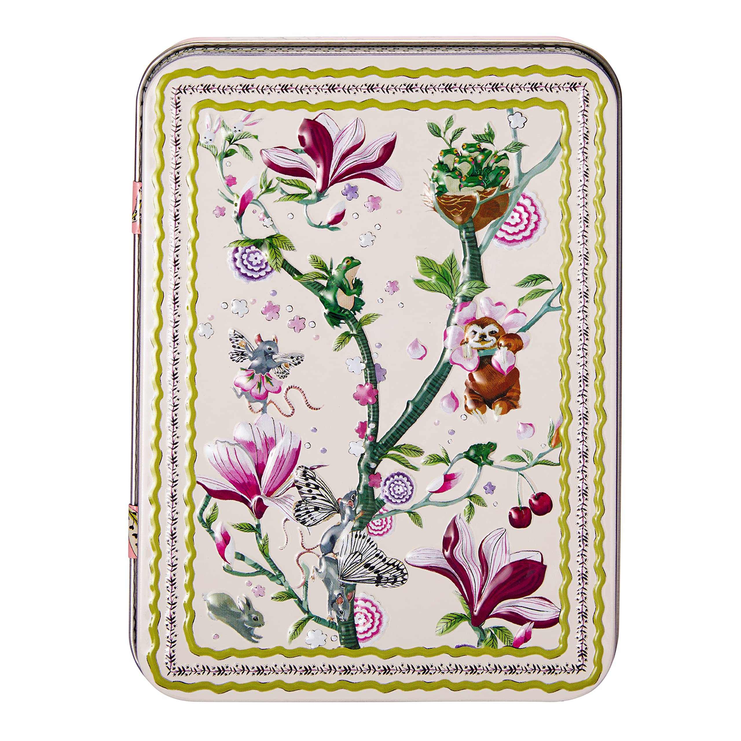 Cath Kidston - The Story Tree Manicure Kit in TinA is a lovely embossed box containing vegan hand cream, cuticle cream, decorative emery and nail clippers, our go-to kit for a hand care ritual. Each cream is infused with invigorating scents of bergamot and mint balanced with aquatic florals, cedarwood and sea musk. Contents: 1 hand cream rich in shea butter to leave skin soft and cared for, with mint leaf essential oil, cocoa seed butter, vitamin E and glycerin. 1 enriched cuticle cream that is also suitable for nails, mint leaf, sunflower seed oil and shea. A Butter - 1 Decorative Nail File with different designs on each side - 1 Custom Nail Clipper with guest star sloth, ready to melt hearts. Details: - 50 PCR recycled plastic hand cream tube - Designed in England - Cruelty free and vegan INGREDIENTS The Story Tree Wake Up Cuticle Cream Ingredients: Aqua Water Eau, Glycerin, Cetearyl Alcohol, Helianthus Annuus (Sunflower) Seed Oil, Polyglyceryl-3 Distearate, Stearic Acid, Dimethicone, Parfum (Fragrance), Phenoxyethanol, Glyceryl Stearate, PEG-100 Stearate, Maman Parkii Butyrosperate (Shea Butter, Caprylyl Glycol, C10-30 Alkyl Acrylates Acrylate, Sodium Hydroxide, Mentha Arvensis (Mint) Leaf Oil, Limonene. The Story Tree Wake Up Hand Cream Ingredients: Aqua Water Eau, Cetearyl Alcohol, Ceteareth-25, Caprylic Capric Triglyceride, Glycerin, Butyrospermum Parkii (Shea Butter), Fragrance (Fragrance), Theobroma Cocoa Seed Butter (Cocoa), Phenoxyethanol, Corn Starch, Allantotose in, Acrylates CD. Alkyl Acrylate Cross Polymer 10-30, Ethylhexylglycerin, Sodium Hydroxide, Tocopheryl Acetate (Vitamin E), Mentha Arvensis (Mint) Leaf Oil, Limonene.Ingredients: The Story Tree Wake Up Cuticle Cream Ingredients: Aqua Water Eau, Glycerin, Cetearyl Alcohol, Helianthus Annuus (Sunflower) Seed Oil, Polyglyceryl-3 Distearate, Stearic Acid, Dimethicone, Parfum (Fragrance), Phenoxyethanol, Glyceryl Stearate, PEG-100 Stearate, Butyrospermum Parkii (Shea) Butter, Caprylyl Glycol, Acrylates C10-30 Alkyl Acrylate Crosspolymer, Sodium Hydroxide, Mentha Arvensis (Mint) Leaf Oil, Limonene. The Story Tree Wake Up Hand Cream Ingredients: Aqua Water Eau, Cetearyl Alcohol, Ceteareth-25, Caprylic Capric Triglyceride, Glycerin, Butyrospermum Parkii (Shea Butter), Parfum (Fragrance), Theobroma Cacao (Cocoa) Seed Butter, Phenoxyethanol, Corn Starch, Allantoin, Acrylates C10-30 Alkyl Acrylate Crosspolymer, Ethylhexylglycerin, Sodium Hydroxide, Tocopheryl Acetate (Vitamin E), Mentha Arvensis (Mint) Leaf Oil, Limonene. Each cream is infused with invigorating scents of bergamot and mint balanced with aquatic florals, cedarwood, and sea musk. Cruelty-free and vegan. Complete the set: a cuticle cream that's also suitable for nails, with emollient sunflower seed oil and shea butter. To leave skin soft and cared for: a hand cream rich in shea butter with essential mint leaf oil, cocoa seed butter, vitamin E and glycerin. To push back your nails: a decorative nail file with different designs on each side and a custom-made nail clipper with our guest star sloth. Upgrade your at-home manicure with our embossed gift box filled with vegan essentials: hand cream, cuticle cream, nail file and nail clipper. Cath Kidston - Le kit de manucure Story Tree en TinA est une jolie boîte en relief contenant de la crème pour les mains végétalienne, de la crème à cuticules, de l'émeri décoratif et un coupe-ongles, notre kit incontournable pour un rituel de soin des mains. Chaque crème est infusée avec des parfums revigorants de bergamote et de menthe équilibrés avec des fleurs aquatiques, du bois de cèdre et du musc marin. Contenu : 1 crème pour les mains riche en beurre de karité pour laisser la peau douce et soignée, avec de l'huile essentielle de feuille de menthe, du beurre de graines de cacao, de la vitamine E et de la glycérine. 1 crème enrichie pour cuticules qui convient également aux ongles, à la feuille de menthe, à l'huile de graines de tournesol et au karité. A Butter - 1 Lime à ongles décorative avec différents motifs de chaque côté - 1 coupe-ongles sur mesure avec paresseux étoile invité, prêt à faire fondre le cœur. Détails : - Tube de crème pour les mains en plastique recyclé PCR à 50 - Conçu en Angleterre - Sans cruauté envers les animaux et végétalien INGRÉDIENTS The Story Tree Wake Up Crème pour cuticules Ingrédients : aqua eau eau, glycérine, alcool cétéarylique, huile de graines d'Helianthus Annuus (tournesol), distéarate de polyglycéryl-3, acide stéarique, diméthicone, parfum (parfum), phénoxyéthanol, stéarate de glycéryle, stéarate PEG-100, butyrosperate Maman Parkii (Beurre de karité, caprylyl glycol, acrylates acrylate d'alkyle C10-30, hydroxyde de sodium, huile de feuille Mentha Arvensis (menthe), limonène. The Story Tree Wake Up Crème pour les mains Ingrédients : aqua eau eau, alcool cétéarylique, Ceteareth-25, triglycéride caprylique caprique, glycérine, butyrospermum parkii (beurre de karité), parfum (parfum), beurre de graines de cacao Theobroma (cacao), phénoxyéthanol, amidon de maïs, allantotose. in, Acrylates CD. Polymère croisé d'acrylate d'alkyle 10-30, éthylhexylglycérine, hydroxyde de sodium, acétate de tocophéryle (vitamine E), huile de feuille de Mentha Arvensis (menthe), limonène.Ingrédients : crème pour cuticules The Story Tree Wake Up Ingrédients : aqua eau eau, glycérine, alcool cétéarylique, huile de graines d'Helianthus Annuus (tournesol), distéarate de polyglycéryl-3, acide stéarique, diméthicone, parfum (parfum), phénoxyéthanol, stéarate de glycéryle, stéarate PEG-100, but. yrospermum Parfums Kii (karité), caprylyl glycol, acrylates acrylate d'alkyle croisés C10-30, hydroxyde de sodium, huile de feuille Mentha Arvensis (menthe), limonène. The Story Tree Wake Up Crème pour les mains Ingrédients : aqua eau eau, alcool cétéarylique, Ceteareth-25, triglycéride caprylique caprique, glycérine, butyrospermum parki