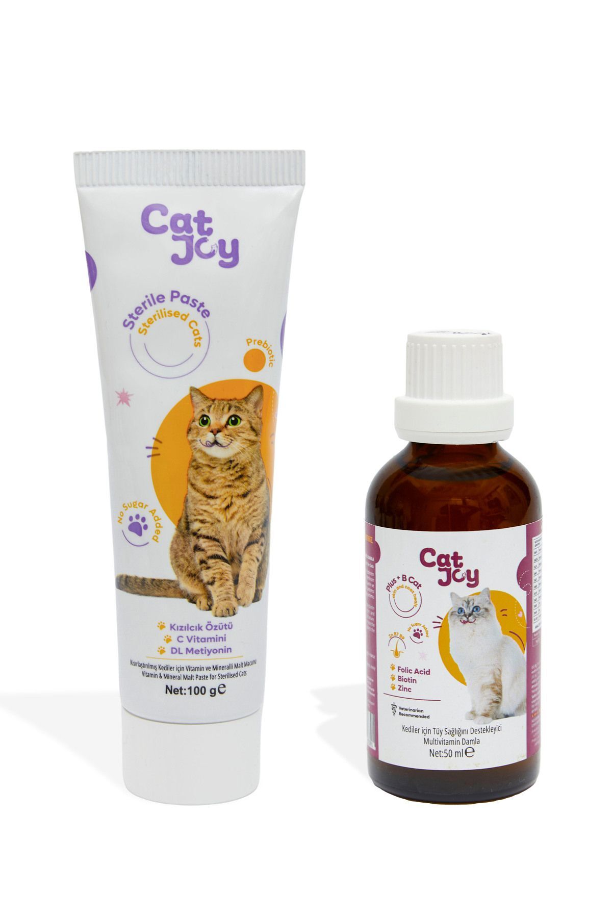 • CatJoy Plus B CatThe drops contain folic acid, biotin, and zinc, which supports your cat's skin and coat health.