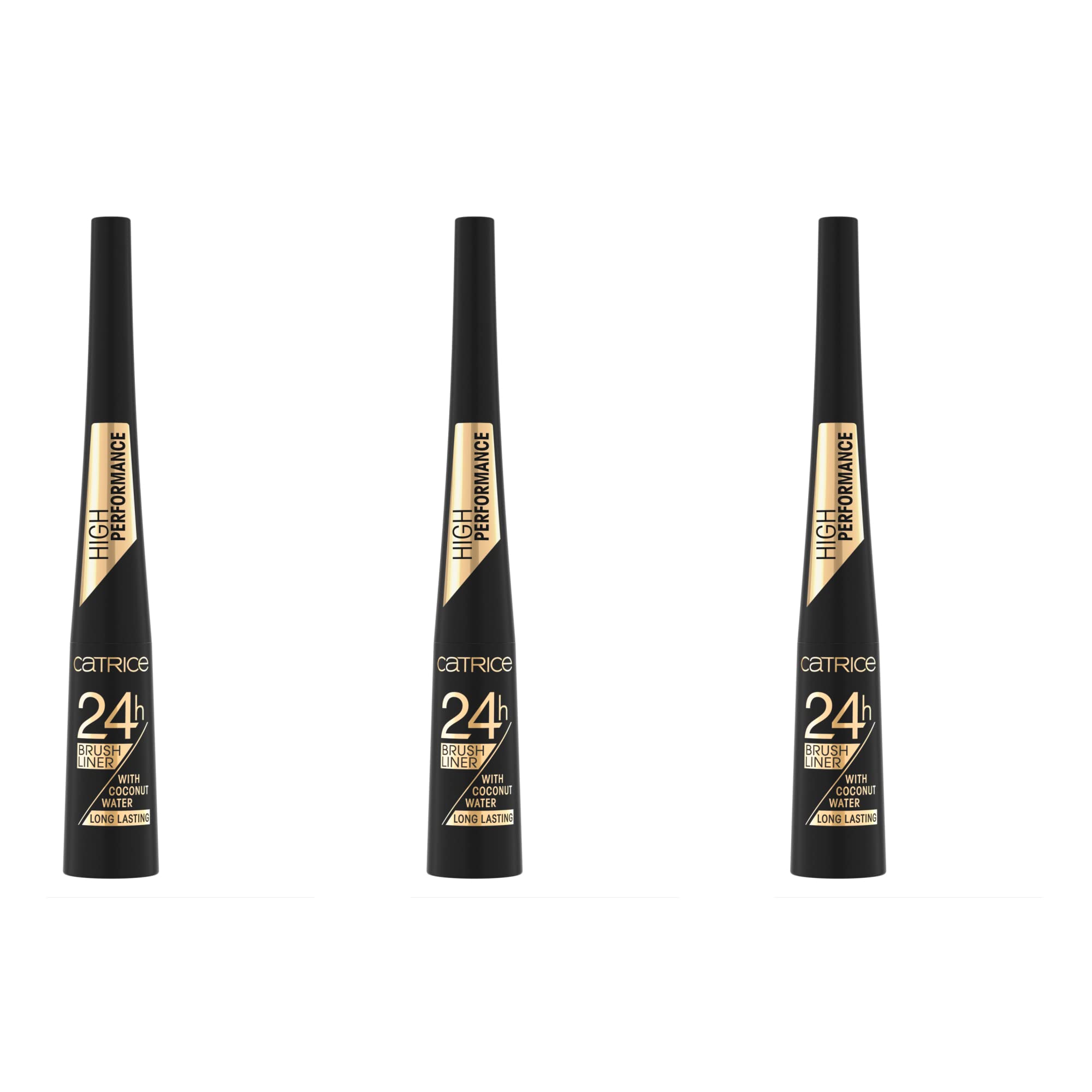 Catrice 24h Lot de 3 feutres pinceaux pour les yeux, sans parabène ni microplastique, avec eau de coco N 010 Ultra Black, nourrissant, définitif, mat, végétalien, sans parfum, 3 x 3 ml