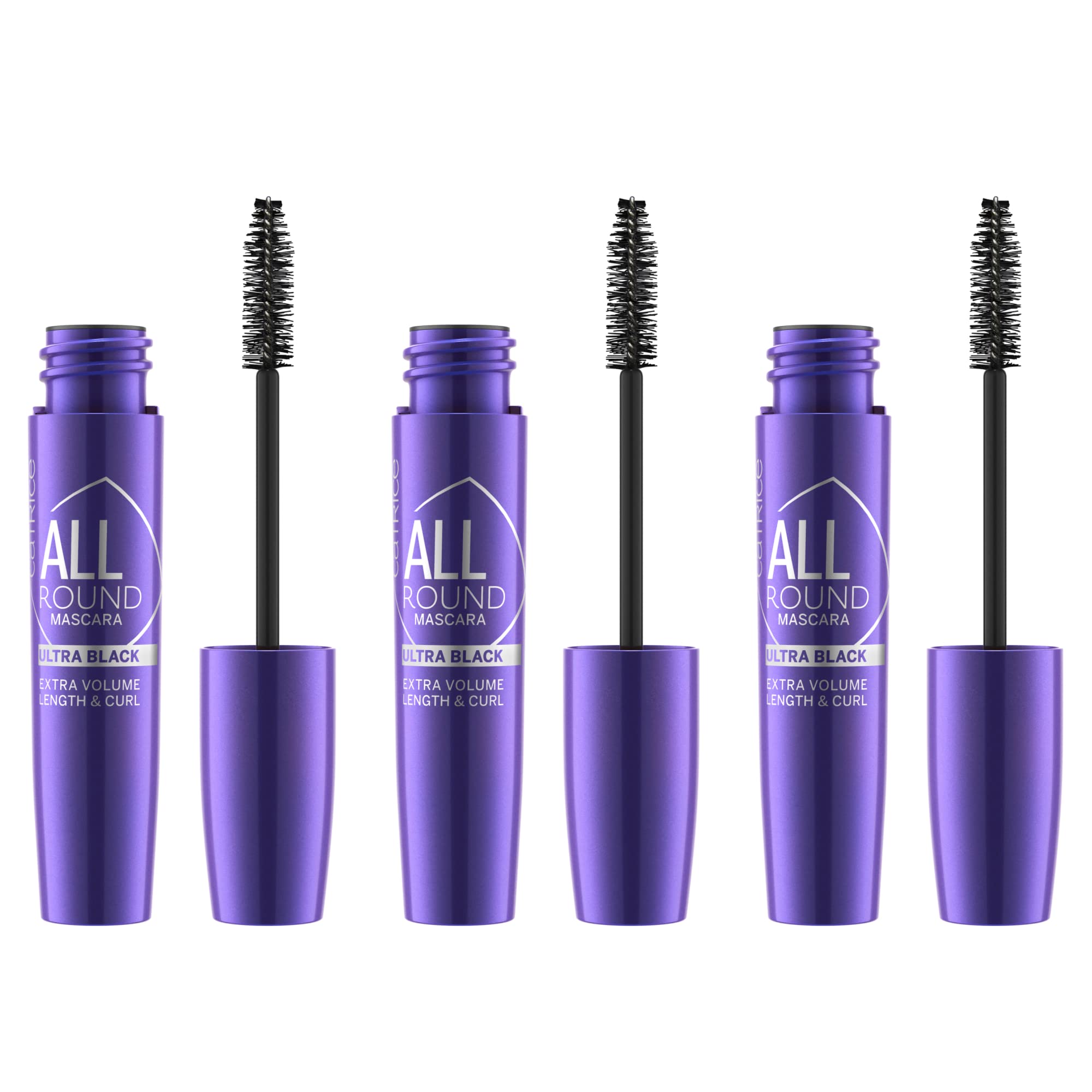 Catrice Catrice Allround - Pack of 3 Ultra Black Mascaras - For Volume and Length - No. 010 Blackest Carbon Black Ever - Extendable Matte Vegan Fragrance-Free Alcohol-Free - 3 x 11 ml