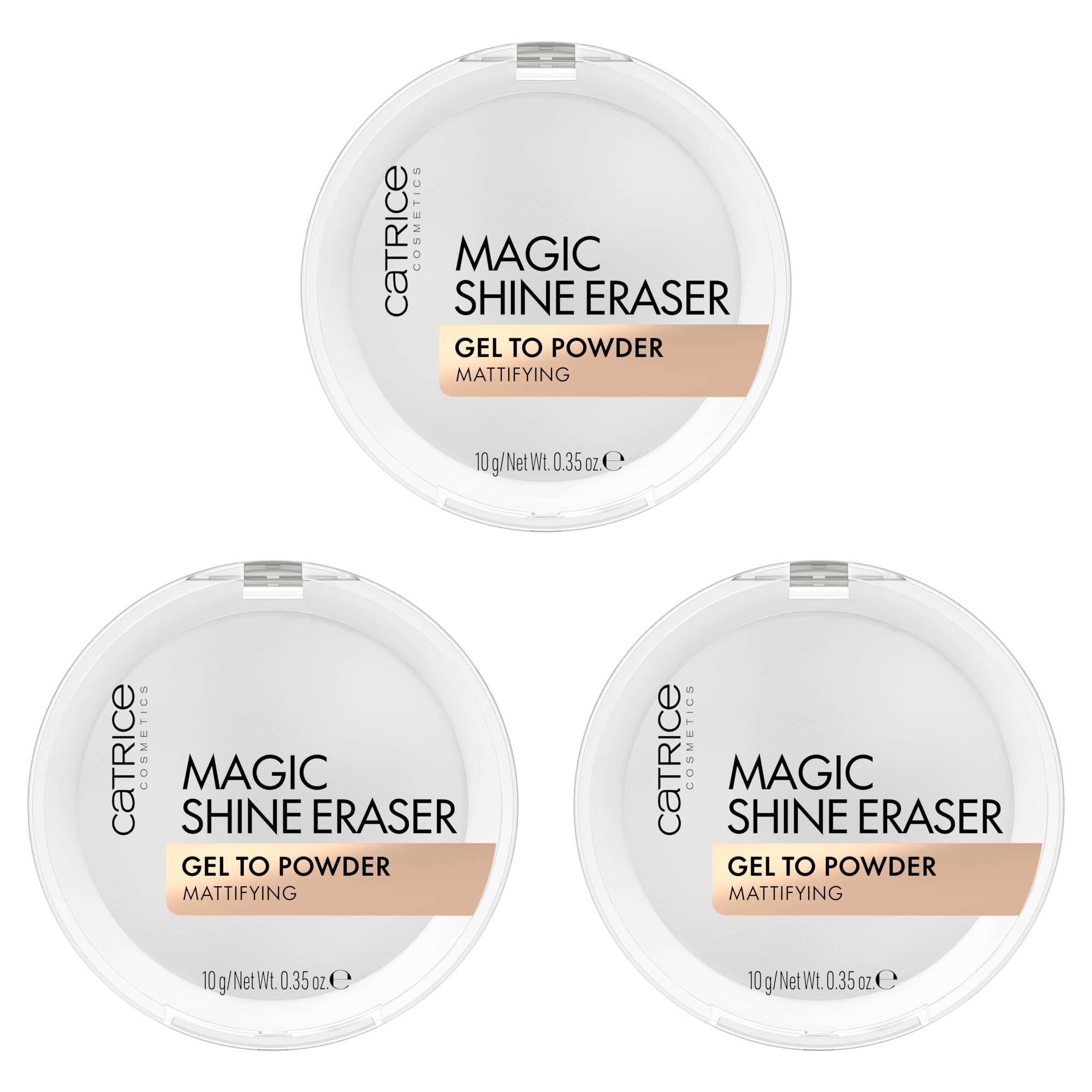 In a convenient MULTI pack! Time for selfies: with Catrice Magic Exfoliating Gel Powder, you're ready for every photo shoot, even with a flash. The soft, mattifying gel-to-powder formula is a universal sensory delight: it blends seamlessly with your skin, creating a flawless finish that's perfect for everyday wear as well as those moments you want to capture with a selfie. The transparent gel texture transforms into a lightweight powder, creating a soft filter effect. Catrice Magic Exfoliating Gel Powder doesn't alter your makeup or leave a white cast. For a perfectly smooth complexion. We say no to animal testing. Cosnova is listed internationally with essence and CATRICE by both PETA Germany and PETA. INGREDIENTS INGREDIENTS: PLYMETHYLSILSESQUIOXANE, DIMETHICONE, DIMETHICONE VINYL DIMETHICONE CROSSPOLYMER, PCA DIMETHICONE, SILICA. INSTRUCTIONS FOR USE Matifying powder gel. Non-drying. No glare under flash for a soft, diffused finish. See moreSolid color, firming, mattifying, instant result, natural, matte, for oily, combination, and mature skin. We say no to animal testing. Cosnova is listed internationally with essence and CATRICE by both PETA Germany and PETA. Vegan, oil-free, fragrance-free, alcohol-free, preservative-free, paraben-free, microplastic-free, nanoparticle-free, gluten-free, and dye-free. For an instant blurring effect. Innovative, lightweight gel-to-powder texture with a wow sensory effect. Instantly mattifies like a setting powder and ensures a soft, velvety finish.Catrice Magic Shine Eraser Lot de 3 flacons de gel à poudre n 010 Transparent, matifiant, raffermissant les pores, naturel, pour peaux mixtes, végétalien, sans huile, sans parfum, sans alcool, 3 x 10 10 g (3er Pack) 010 Camera ReadyDESCRIPTION DU PRODUIT DESCRIPTION DU PRODUIT Dans un pack pratique MULTI ! Le temps pour les selfies : avec le gel gommage magique Catrice à la poudre, vous êtes prêt pour chaque séance photo, même avec le flash. La formule gel à poudre douce et matifiante est une merveille sensorielle universelle : elle se fond parfaitement avec votre peau et crée une finition impeccable qui est parfaite pour la vie quotidienne ainsi que pour les moments que vous souhaitez capturer avec un selfie. La texture transparente en gel se transforme en une poudre légère qui crée un effet de filtre doux. Le gel à poudre magique Catrice ne modifie pas le maquillage et ne laisse pas de reflets blancs. Pour un teint parfaitement lisse. Nous disons non à l'expérimentation animale. Cosnova est répertorié internationalement avec essence et CATRICE à la fois chez PETA Allemagne et PETA. INGRÉDIENTS INGRÉDIENTS : PLYMÉTHYLSILSESQUIOXANE, DIMETHICONE, DIMETHICONE VINYL DIMETHICONE CROSSPOLYMER, PCA DIMETHICONE, SILICA. MODE D'EMPLOI Gel à poudre matifiant. Ne dessèche pas. Pas de reflet en cas de flash pour une finition floue. Voir plusCouleur unie, raffermissante, matifiante, résultat instantané, naturel, mat, pour peaux grasses, mixtes, peaux matures. Nous disons non à l'expérimentation animale. Cosnova est répertorié internationalement avec essence et CATRICE à la fois chez PETA Allemagne et PETA. Végétalien, sans huile, sans parfum, sans alcool, sans conservateurs, sans paraben, sans particules de microplastiques, sans nanoparticules, sans gluten, sans colorants. Pour un effet de flou instantané. Texture gel à poudre innovante et légère avec effet sensoriel Wow. Mat instantané comme une poudre de fixation et assure une finition douce et veloutée.