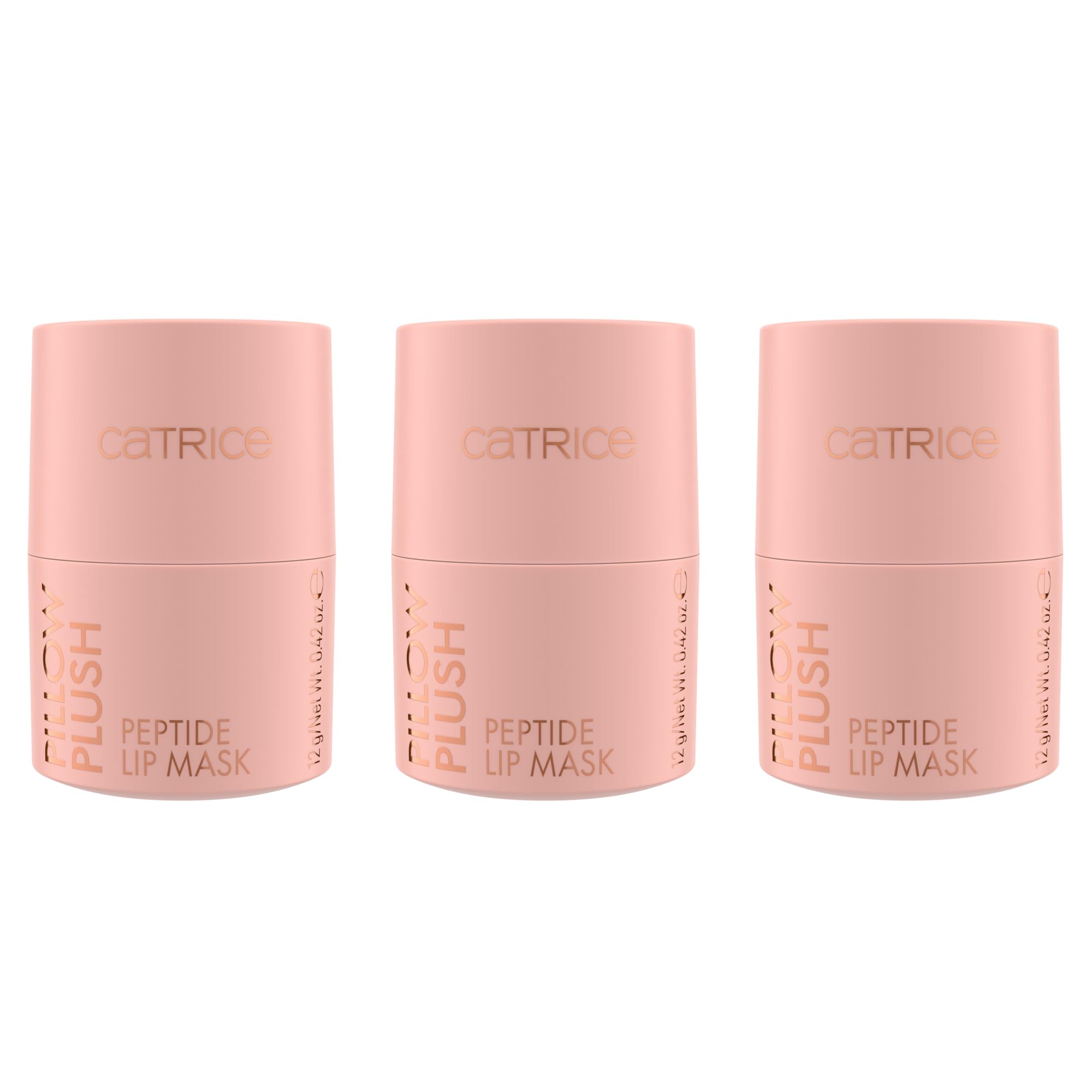 In a convenient MULTI pack. A lip mask like no other. The Catrice Pillow Plush Peptide 010 Pep Talk lip mask impresses with its innovative twist-up packaging that makes application a breeze. Enriched with peptides and hyaluronic acid, the rich, soft texture, like a nourishing cocoon, glides onto the lips, intensely hydrating them and leaving a smooth, naturally glossy finish. The delicate apricot tint is sheer upon application – ideal for both daytime wear and as an overnight mask for extra care. The delicate cherry scent and elegant design make this lip mask an absolute must-have in any beauty routine. We say no to animal testing. Cosnova is listed internationally with essence and CATRICE at PETA Germany and PETA. INGREDIENTS Ingredients: Polystyrene, ethylophexyl palmitate, di-di-dilinoleate, diatomaceous dihydroxystearate, diisostearyl malate, synthetic wax, dipentaerythrityl hexahydroxystearate hexarosearate. INATE, TRIDE. CYL TRIMELLITATE, POLYGLYCERYL-2 TRIISOSTEARATE, LIMNANTHES ALBA (MEADOWFOAM) SEED OIL, TOCOPHERYL ACETATE, HYDROLYZED SODIUM HYALURONATE, GLYCERYL BEHENATE, ETHYLHEXYLGLYCERIN, SODIUM SACCHARLIN, PALMITOYL TRIPEPTIDE-1, PHENOXYETHANOL, PARFUM (FRAGRANCE), EUGENOL, ROSE KETONES, CI 77491 (Iron Oxides), CI 77492 (Iron Oxides), CI 77891 (Titanium Dioxide). DIRECTIONS FOR USE Peptide lip mask for intensive care and smoother, fuller lips. See moreNourishing, smoothing, hydrating, natural. We say no to animal testing. Cosnova is listed internationally with essence and CATRICE by PETA Germany and PETA. Vegan, paraben-free, microplastic-free, nanoparticle-free, gluten-free. Glossy finish for naturally cared-for lips. Innovative twist-up format for effortless application. Contains peptides and hyaluronic acid for intensive care.Catrice Pillow Plush Peptide Lot de 3 masques à lèvres N 010 Nude hydratant, lissant, nourrissant, naturels, végétaliens, sans paraben, sans particules de microplastique, sans nanoparticules (3 x 12 g 36 g (3er Pack) 010 Pep TalkDESCRIPTION DU PRODUIT DESCRIPTION DU PRODUIT Dans un pack pratique MULTI. Un masque à lèvres pas comme les autres. Le masque à lèvres Catrice Pillow Plush Peptide 010 Pep Talk convainc par son emballage Twist-up innovant qui rend l'application un jeu d'enfant. Enrichie en peptides et en acide hyaluronique, la texture riche et douce comme une enveloppe nourrissante se pose sur les lèvres, les hydrate intensément et laisse une finition lisse et naturellement brillante. La teinte abricot délicate est transparente lors de l'application - Idéal aussi bien pour la journée que comme masque de nuit pour les soins supplémentaires. Le parfum délicat de cerise et le design élégant font de ce masque à lèvres un incontournable absolu de toute routine de beauté. Nous disons non à l'expérimentation animale. Cosnova est répertorié internationalement avec essence et CATRICE chez PETA Allemagne et PETA. INGRÉDIENTS Ingrédients : polystyrène, palmitate d'éthylophexyle, di-di-dilinoléate, dihydroxystéarate de diatomée, malate de diisostéaryle, cire synthétique, dipentaéérythrityle, hexa-hydroxystéarate hexaroséarate. INATE, TRIDE. CYL TRIMELLITATE, POLYGLYCERYL-2 TRIISOSTEARATE, LIMNANTHES ALBA (MEADOWFOAM) SEED OIL, TOCOPHERYL ACETATE, HYDROLYZED SODIUM HYALURONATE, GLYCERYL BEHENATE, ETHYLHEXYLGLYCERIN, SODIUM SACCHARL IN, PALMITOYL TRIPEPTIDE-1, PHENOXYÉTHANOL, PARFUM (FRAGRANCE), EUGENOL, ROSE KETONES, CI 77491 (oxydes de fer), CI 77492 (oxydes de fer), CI 77891 (dioxyde de titane). MODE D'EMPLOI Masque à lèvres aux peptides pour un soin intensif et des lèvres plus lisses et pleines. Voir plusNourrissant, lissant, hydratant, naturel. Nous disons non à l'expérimentation animale. Cosnova est répertorié internationalement avec essence et CATRICE chez PETA Allemagne et PETA. Végétalien, sans paraben, sans microparticules plastiques, sans nanoparticules, sans gluten. Finition brillante pour des lèvres naturellement soignées. Format Twist-up innovant pour une application sans effort. Contient des peptides et de l'acide hyaluronique pour un soin intensif.