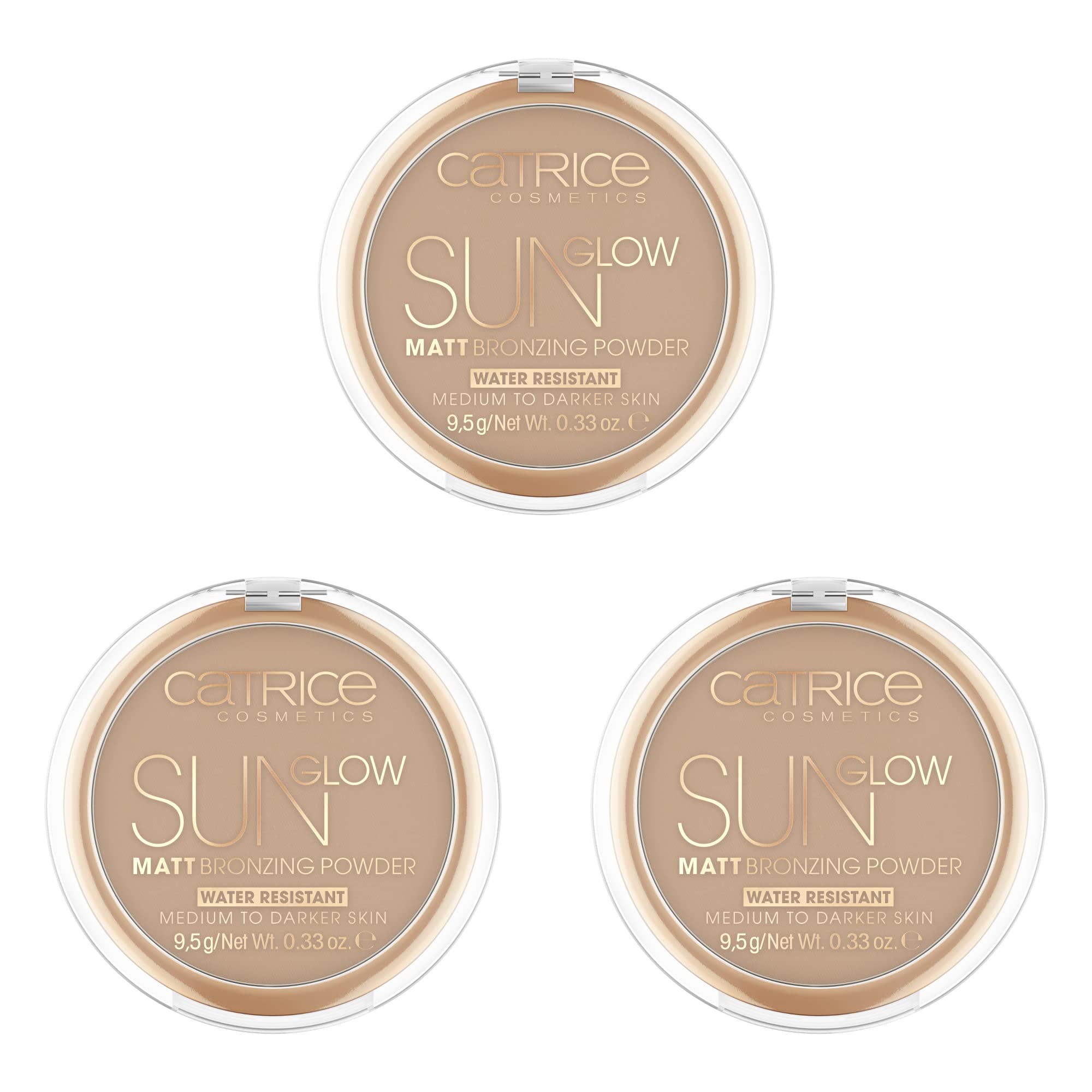 Catrice Sun Glow Lot de 3 poudres bronzantes mates waterproof n 035 Universal Bronze, pour peaux mixtes, pour peaux mixtes, pour peaux mixtes, mattes, végétaliennes, 3 x 9,5 g