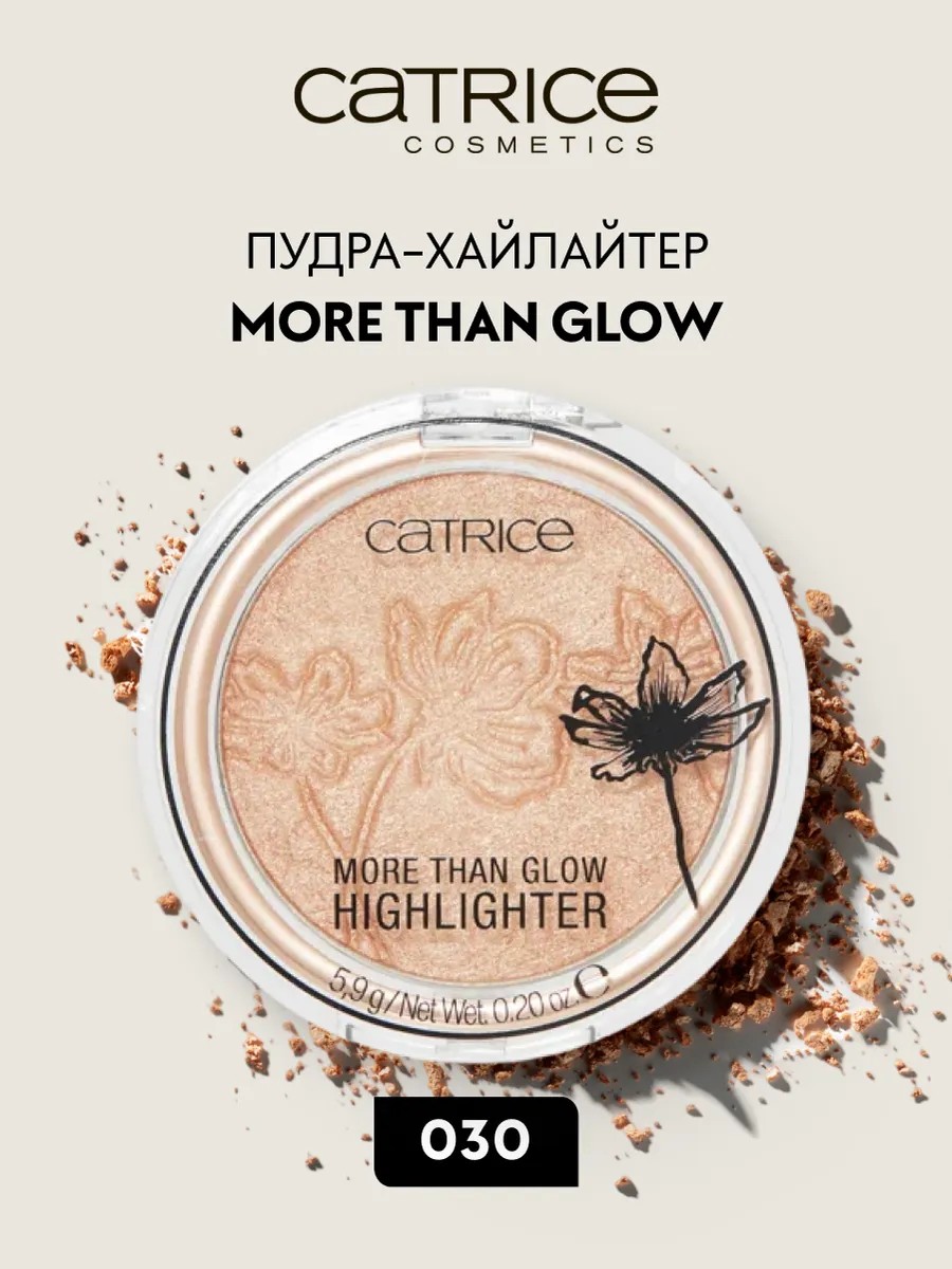 CATRICE Пудра-хайлайтер More Than Glow 030. Ультрамягкая шелковистая текстура этого веганского хайлайтера гарантирует идеальное сияние. Пудровая формула с интенсивным глянцевым блеском мягко сливается с кожей, подчеркивая ваши лучшие черты. Способ применения: нанесите кистью или подушечками пальцев на верхние точки скул, переносицу, области под бровью и внутренние уголки глаз.
