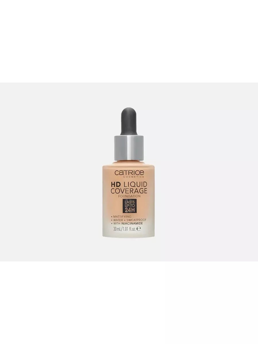 Тональный крем HD Liquid Coverage - ваш лучший помощник в создании естественных и эффектных макияжей! Профессиональное бьюти средство женской косметики CATRICE поможет вам добиться эффекта "второй кожи" и позволит сохранить безупречный цвет лица и бархатисто-матовый финиш до 24 часов! Тональная основа содержит ниацинамид - этот компонент обладает противовоспалительным и обеззараживающим действием, помогает осветлить пигментные пятна, улучшает цвет лица и делает кожу матовой и гладкой. Такой тональник поможет вам не только в маскировке прыщей, синяков и постакне, но и уходе за лицом. Жидкая ультралегкая текстура обеспечивает плотное покрытие и устойчива к воздействию пота и воды. Вы можете использовать тон для создания образов на вечеринку или дискотеку - будьте уверены, ваш макияж выдержит самые активные танцы! Тоналка подходит для девушек подростков и взрослых женщин - она предназначена для жирной, проблемной и нормальной кожи, может использоваться на комбинированной и зрелой. В каталоге доступны светлые и темные оттенки - вы легко подберете тон под свой цвет кожи и сможете аккуратно подчеркнуть красоту своего лица, сохранив естественность и натуральность! Формула не содержит минерального масла, частиц микропластика и парабенов.