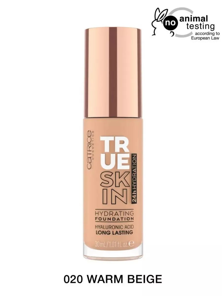Catrice True Skin Hydrating Foundation is your secret to natural, yet flawlessly smooth and even skin. This long-lasting cream creates weightless, comfortable coverage with medium to full coverage, gently conceals imperfections and redness, and provides a natural, matte finish with a "second skin" effect. The vegan formula with hyaluronic acid and watermelon seed oil provides intense hydration and gentle care. Contains hyaluronic acid and watermelon seed oil.
