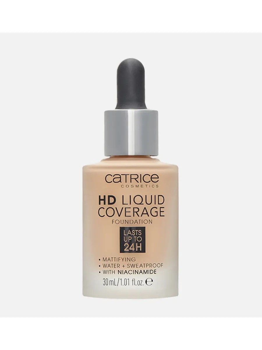 HD Liquid Coverage Foundation is your best assistant for creating natural and stunning makeup looks! This professional beauty product from the women's cosmetics brand CATRICE will help you achieve a "second skin" effect and maintain a flawless complexion and velvety matte finish for up to 24 hours!