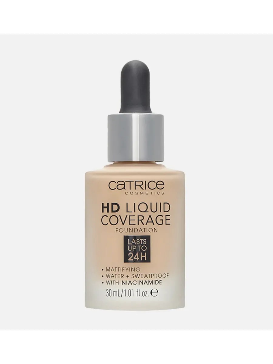 HD Liquid Coverage Foundation is your best assistant for creating natural and stunning makeup looks! This professional beauty product from the women's cosmetics brand CATRICE will help you achieve a "second skin" effect and maintain a flawless complexion and velvety matte finish for up to 24 hours!